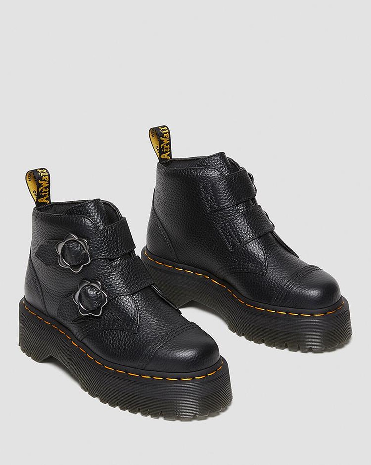 就如同系列名稱所解釋,Dr. Martens將原本俐落的金屬方釦換成了小花的形狀,推出Addina Quad瑪莉珍鞋、Devon高筒靴以及Blaire厚底拖鞋。靴子與瑪莉珍鞋台灣地區進口了最受歡迎的黑色樣式,拖鞋則有黑白兩色可以選擇。
