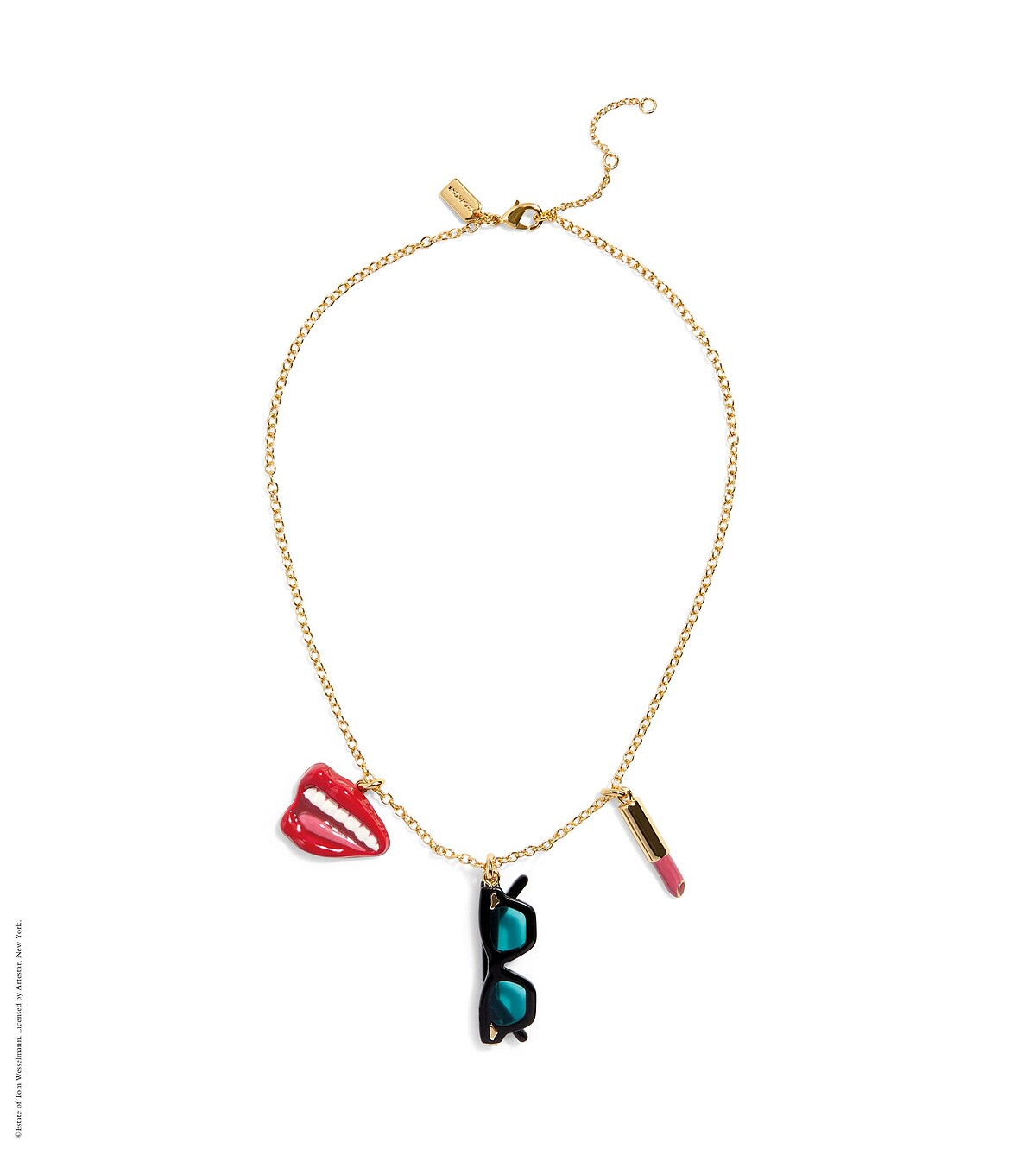 集合經典紅唇、口紅、墨鏡串飾打造成造型項鍊。