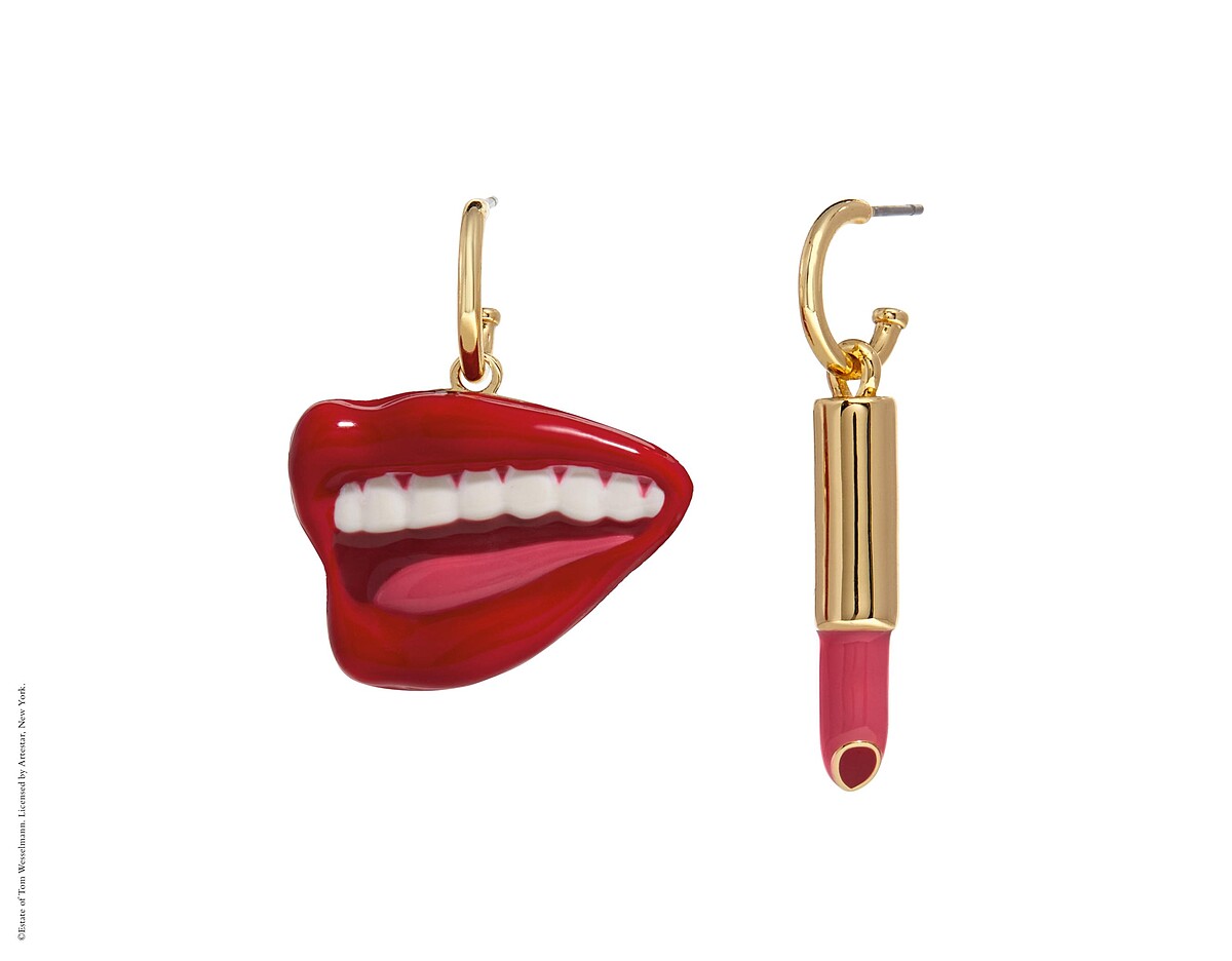 一邊是口紅、一邊是紅唇的造型耳環,絕對是妝點穿搭的最佳首選。
