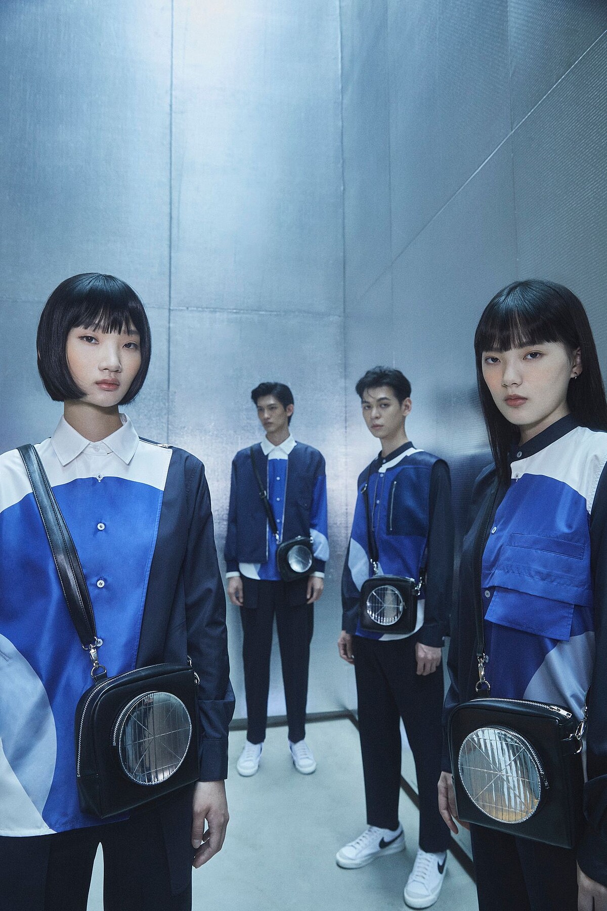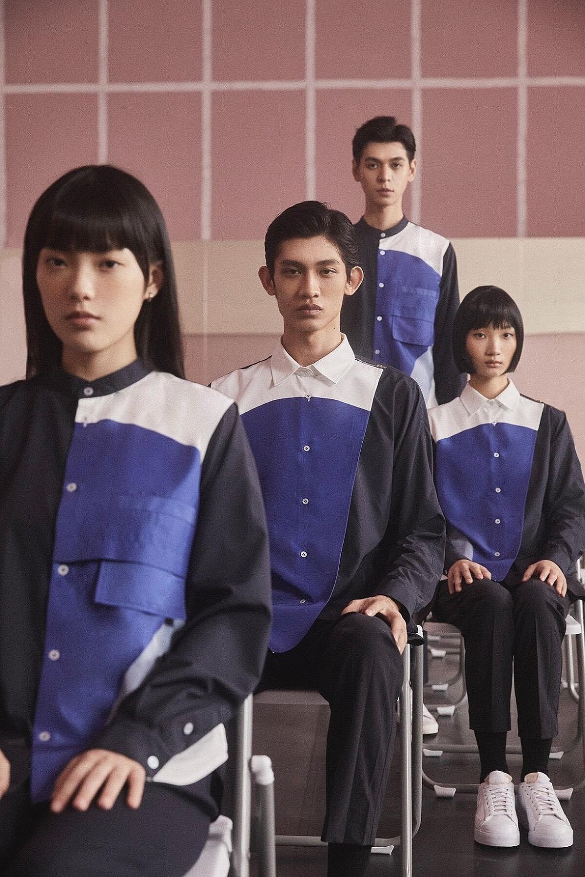 色調上,「北藝藍」Panton 646貫穿系列,立裁設計與結構性輪廓讓造型更立體有型,細節設計上講究人體工學,像是前片覆蓋設計跳脫既有的襯衫框架,讓女性工作人員能夠自在活動,避免曝光。