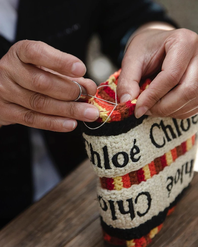 特與黎巴嫩小眾品牌Sarah’s Bag合作,以後者的純手工鉤針手法重製Chloé熱賣包款Woody托特包。創立於2000年,Sarah’s Bag為社會企業,品牌核心旨在透過在地的工藝文化,並提供弱勢婦女其工作機會。