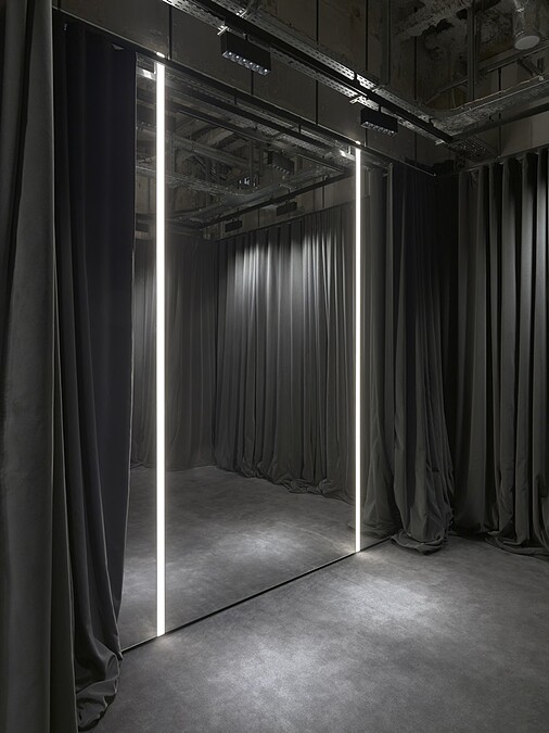 一進Balenciaga高級訂製精品店的大門,便以門廊為界劃分出女裝和男裝,運用鏡面玻璃打造成牆面,真空成型鋁材結合機械壓力系統製作的玻璃陳列櫃,還有以發泡塗層處理的樓梯扶手,上頭有呼應高訂沙龍的典藏花式圖案,此外,精品店還提供專屬的客製化服務。