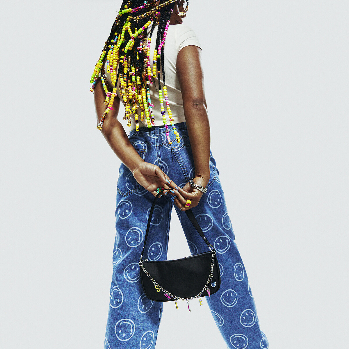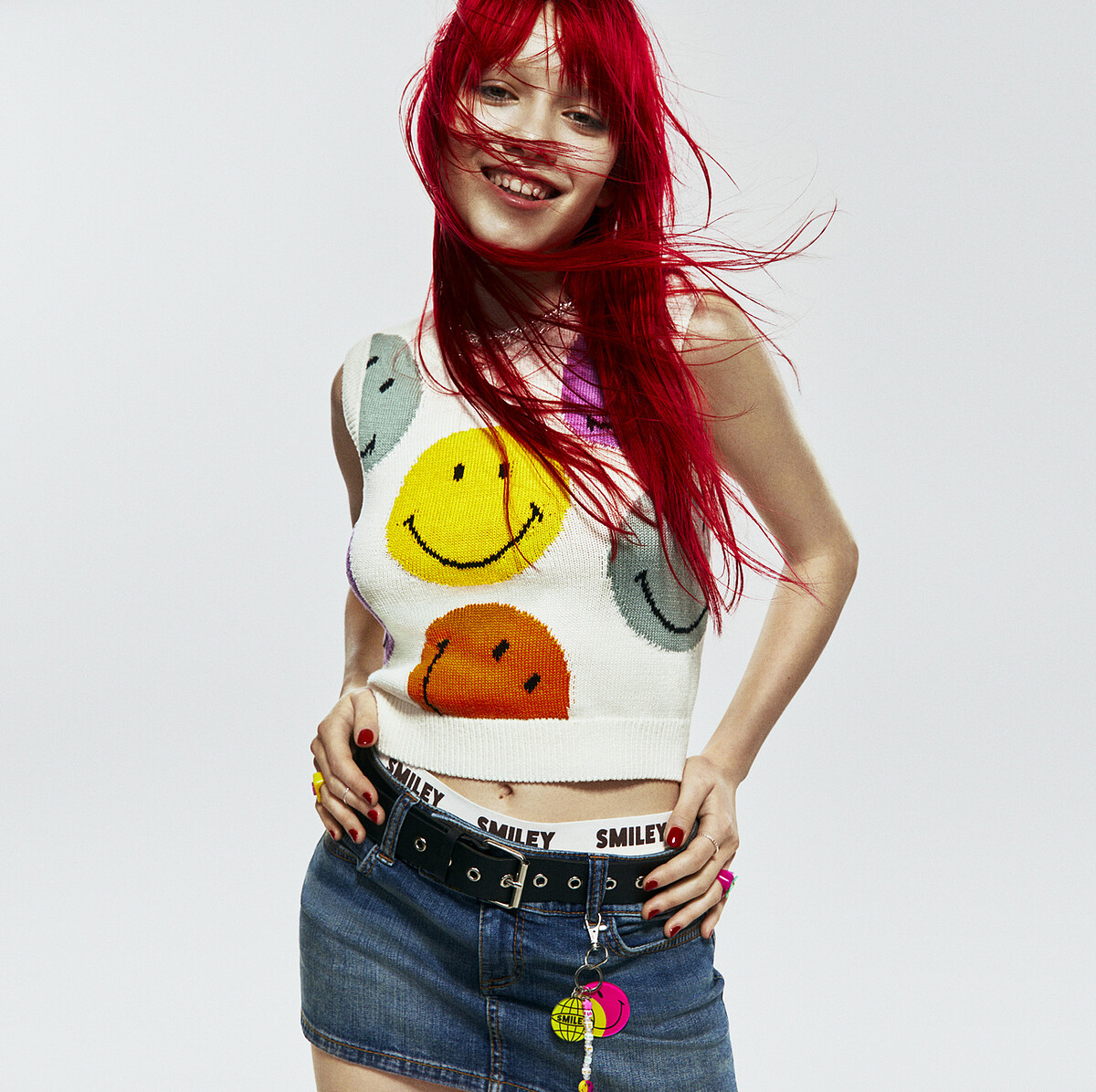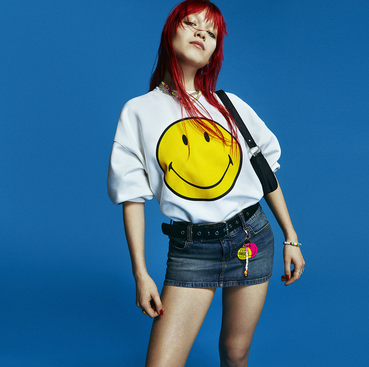 正能量代表Smiley,可愛又療癒的笑臉圖樣,時被各大品牌找上合作。創立於1971、走過各復古年代,剛好今年Y2K穿搭風潮回歸,和H&M一起推出最新的聯名服飾系列。