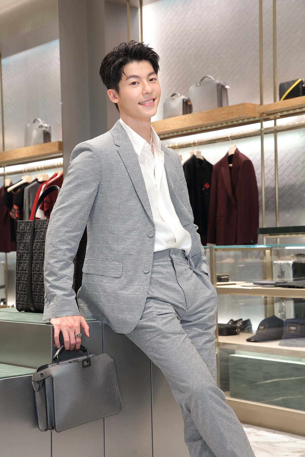 而壓軸登場的就是近日與王嘉爾、許凱並列為品牌大使的許光漢!呼應新店的灰銀內裝,許光漢也選擇同色的西裝出席,簡單的白色襯衫打底,並首次加上飾品點綴造型。