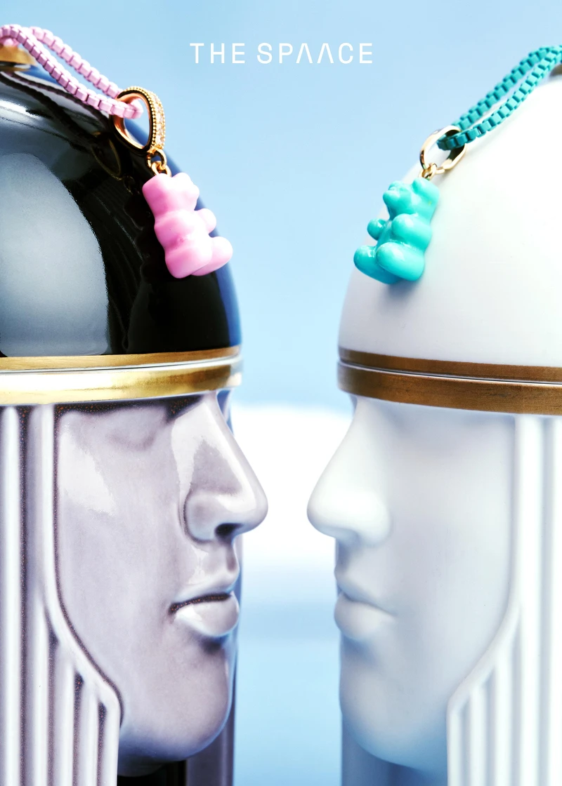 席捲Instagram的小熊軟糖項鍊,就連Blackpink成員Jennie也愛不釋手,這個來自北歐挪威的首飾品牌Crystal Haze,由Ophelia Alickaj與Sara Vlatkovic設計師創立,採用巴西出產的彩色水晶、寶石和土耳其、希臘的金屬鍊條打造,此次THE SPAACE開站獨家推出乾燥玫瑰粉、沉靜天空藍兩款限定色。