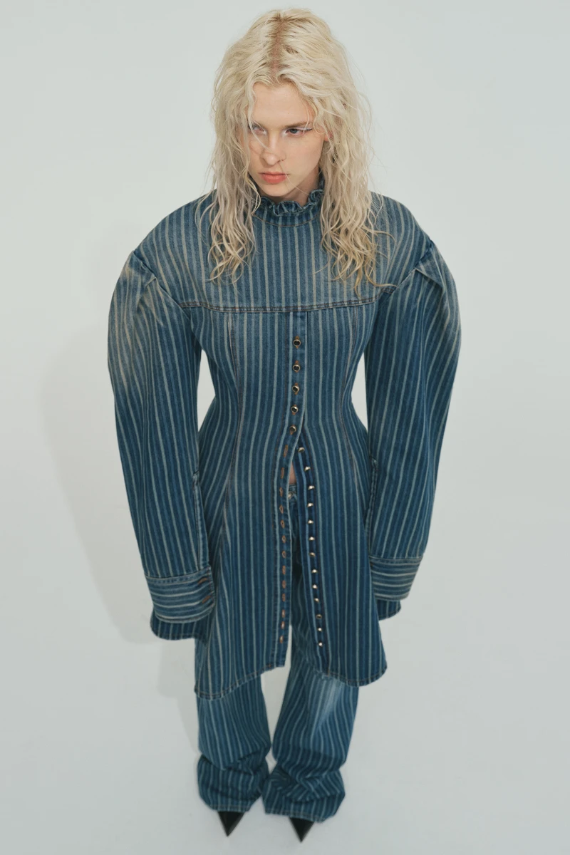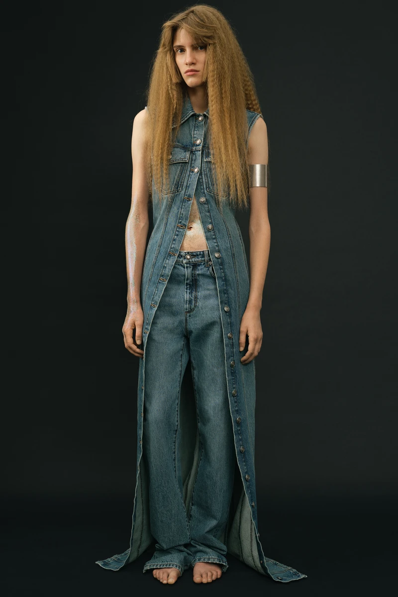也許單色更能表達關於十九世紀時英國皇室的端莊典雅,泡泡袖、臂環及半身裙裝等女士單品有著更多不同的當代面向。又或是妳看到了嬉皮感的全丹寧造型,運用刻意拉長的服裝剪裁位風格帶來更多新意,比如過長水袖這樣已紅過幾季的趨勢細節,本季設計師讓它出現在風衣、襯衫及針織衫上,更明確展現街頭不羈的叛逆氣息。