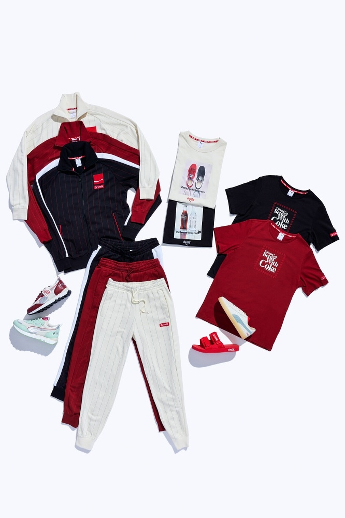 雙方首度攜手合作,一口氣推出五雙聯名鞋款,首波主打為Puma Slipstream by Coca Cola,靈感源自為80年代籃球運動而生的傳奇鞋款 Slipstream,採用純白皮革製作,將Puma招牌彎刀標誌換上可口可樂的代表色,綴以灰藍色細節設計,並在鞋後跟、鞋舌處壓印上Coca-Cola的字樣。