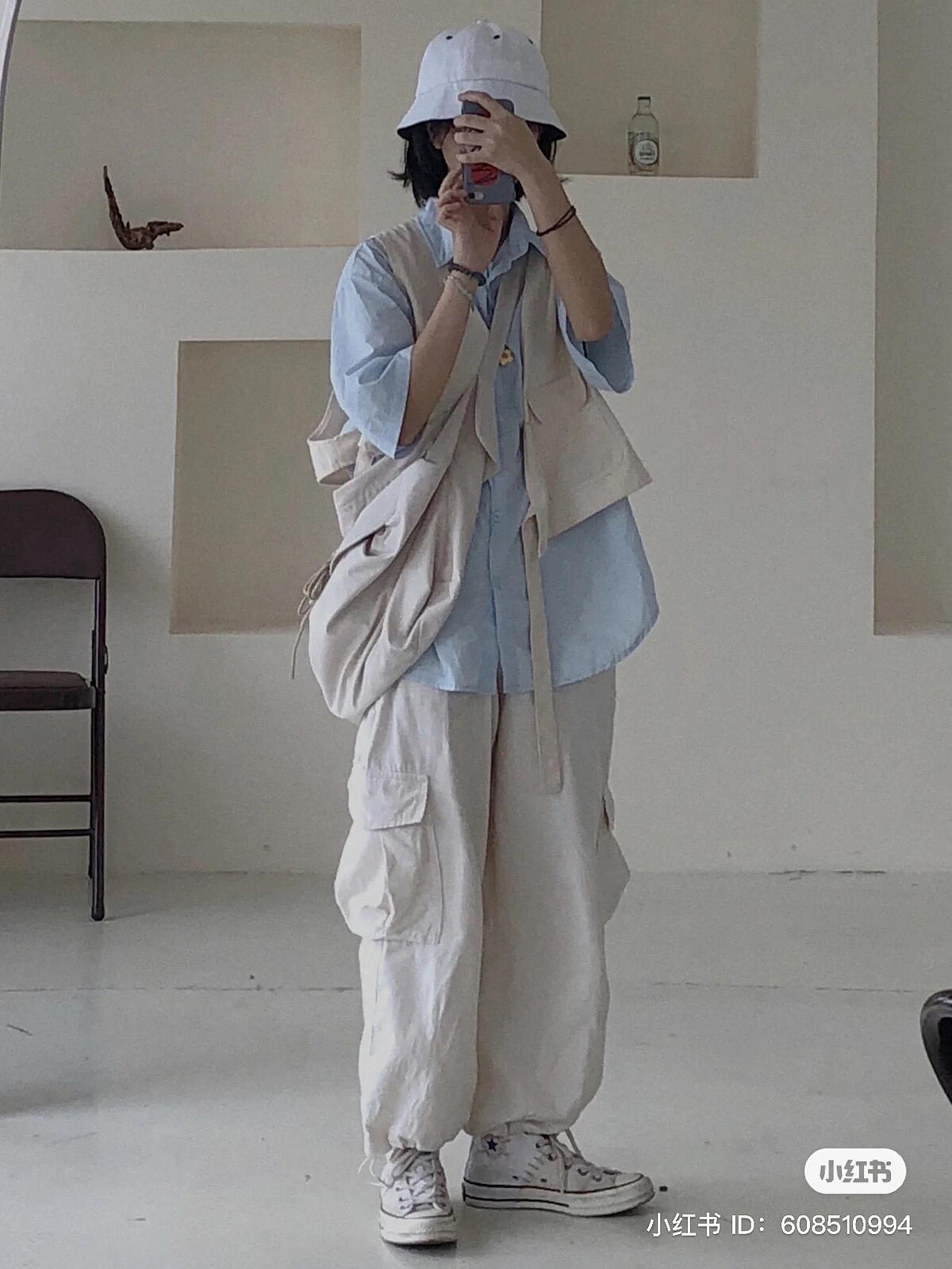 工裝時以低飽和的自然色調設計,像是青苔綠、大地沙色、灰藍等,淡雅又療癒的色系,不光是工裝服飾,也是女孩們在日常服飾想要穿出知性、氣質經常會選擇的顏色。