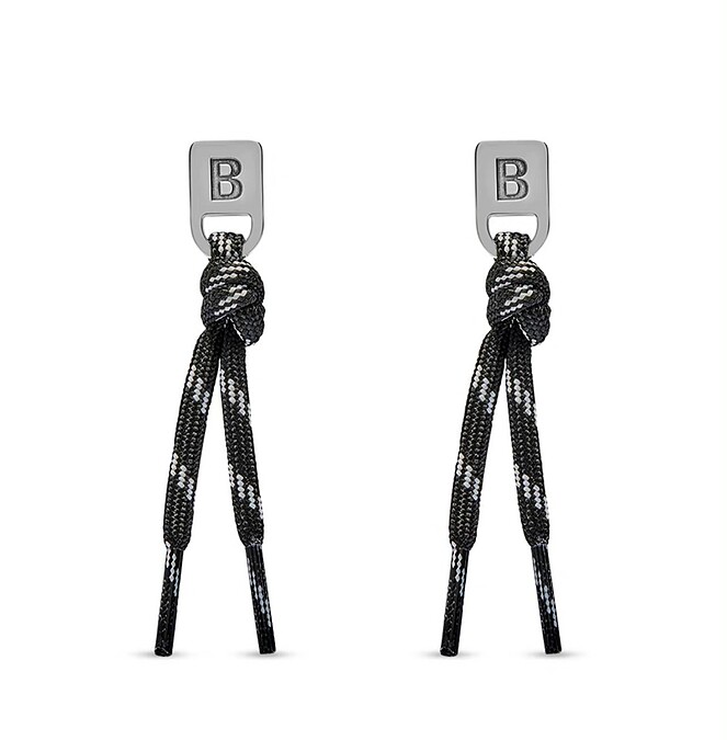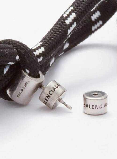 鞋帶耳環除了蝴蝶結款,另外推出刻有B字的打結耳環,不只如此,巴黎世家還運用Triple S老爹鞋的抽繩打造高達450美元的鞋帶項圈,項圈中央以Balenciaga Logo的金屬飾牌點綴。