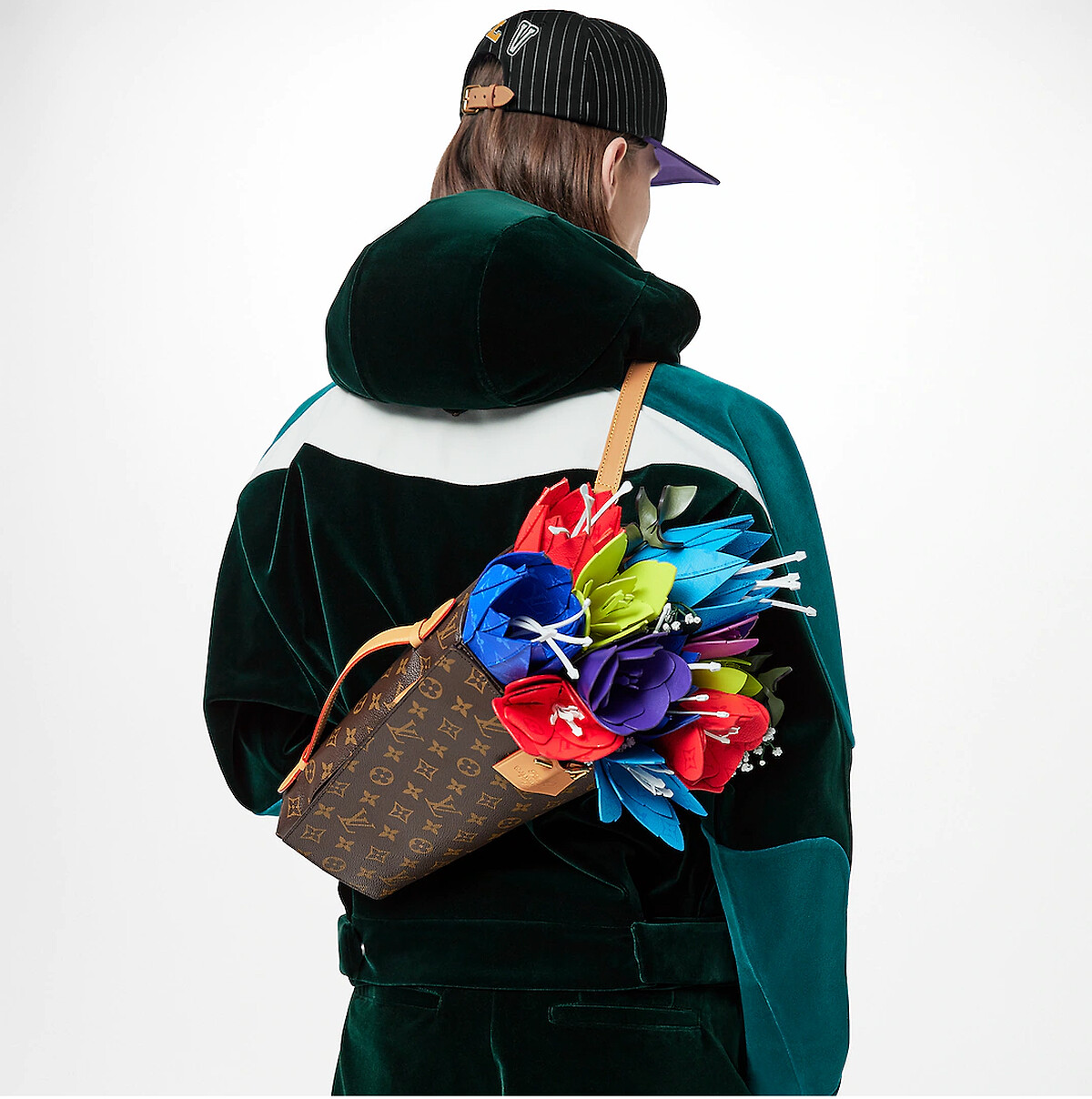 LV 2022秋冬男裝延續對於已逝創意總監Virgil Abloh的想念,用「Dreamhouse夢想屋」的概念發揮Virgil Abloh天馬行空的玩味創意。秀上廣為人討論的設計除了油漆包,另有兩款花束提袋也相當吸睛!
