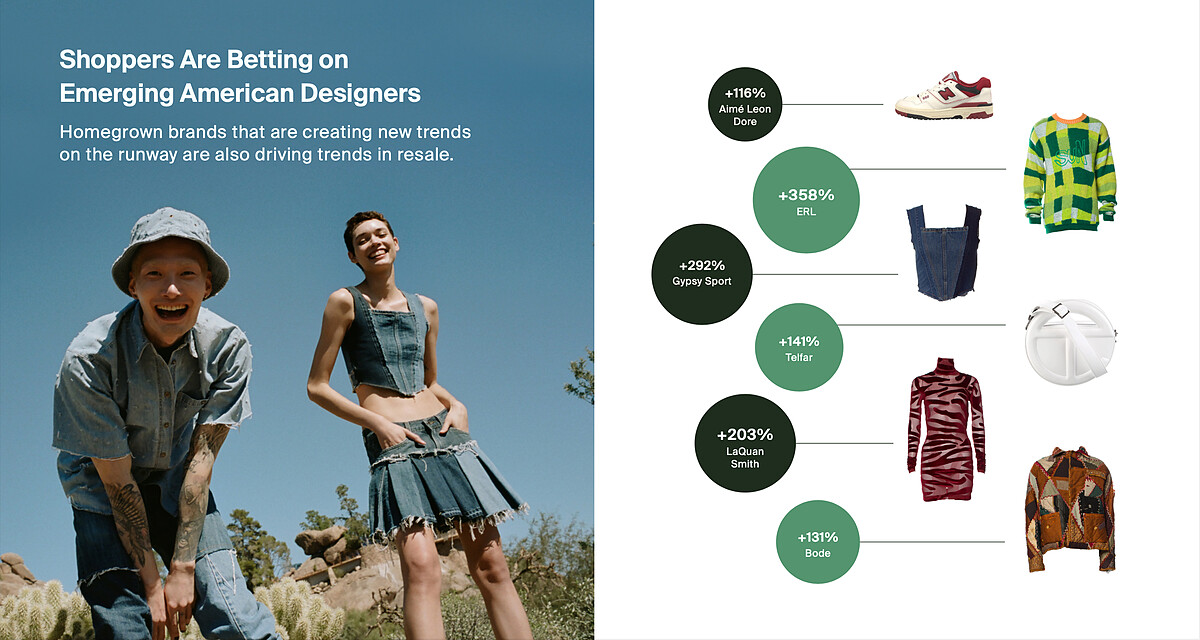 小眾設計師品牌,透過口耳相傳的社群渲染,在沒有大篇幅的廣告和代言人的情況下,依舊在時尚圈佔有自己的一席地,根據The Real Real統計,官網上目前Aimé Leon Dore、ERL、Gypsy Sport、Telfar、LaQuan Smith、Bode六個品牌的需求量也相當可觀。