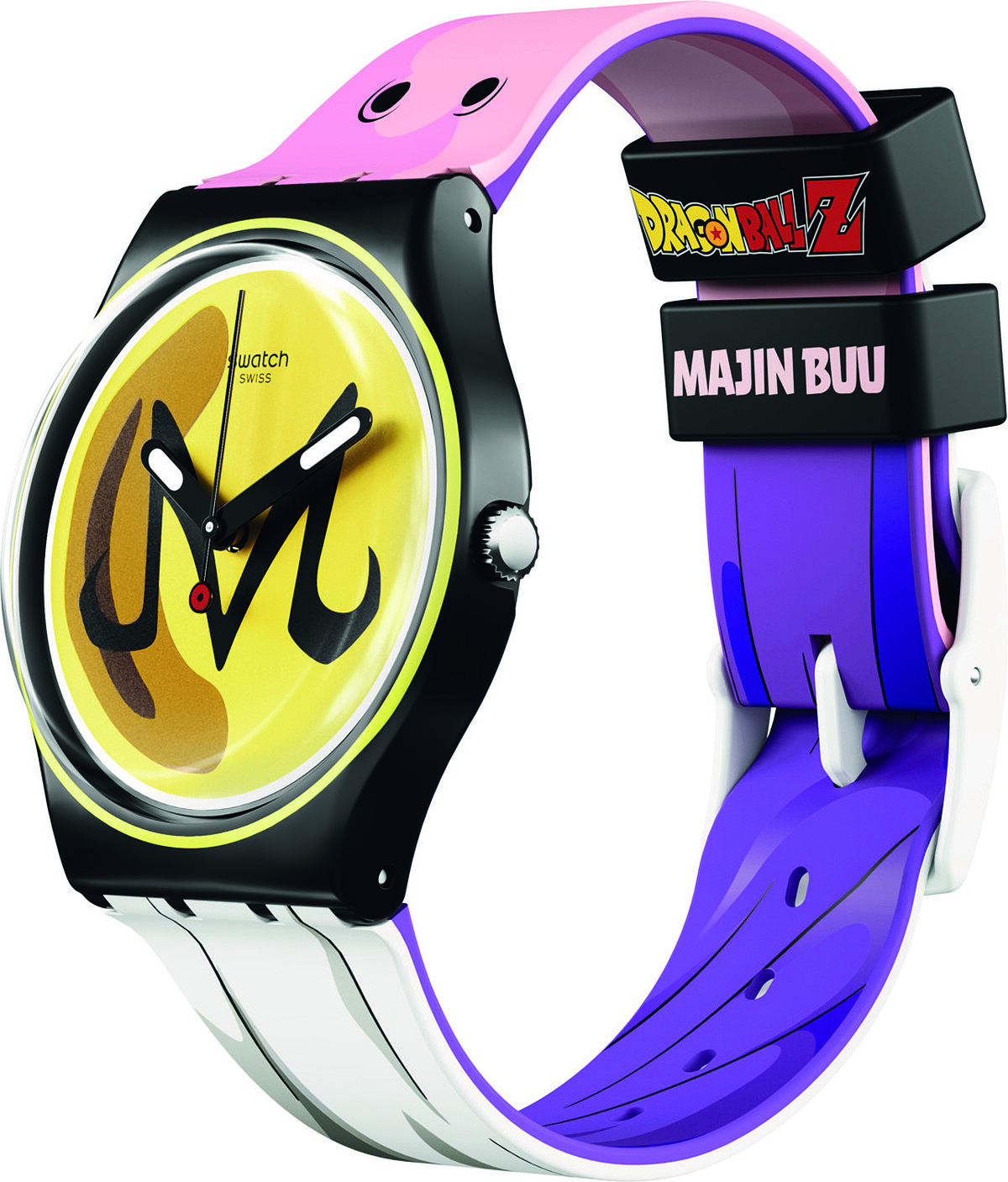 亦正亦邪的Majin Buu(魔人普烏)以圓滾滾的胖普烏型態最受粉絲們喜愛,擁有將敵人吸收獲得他們的技能的特殊攻擊方式,正面的錶帶採用原始型態的小普烏設計,背面則是呈現胖普烏的樣子,唯一不變的是普烏的金色腰帶,因以此作為最能代表普烏的象徵製作成錶盤。