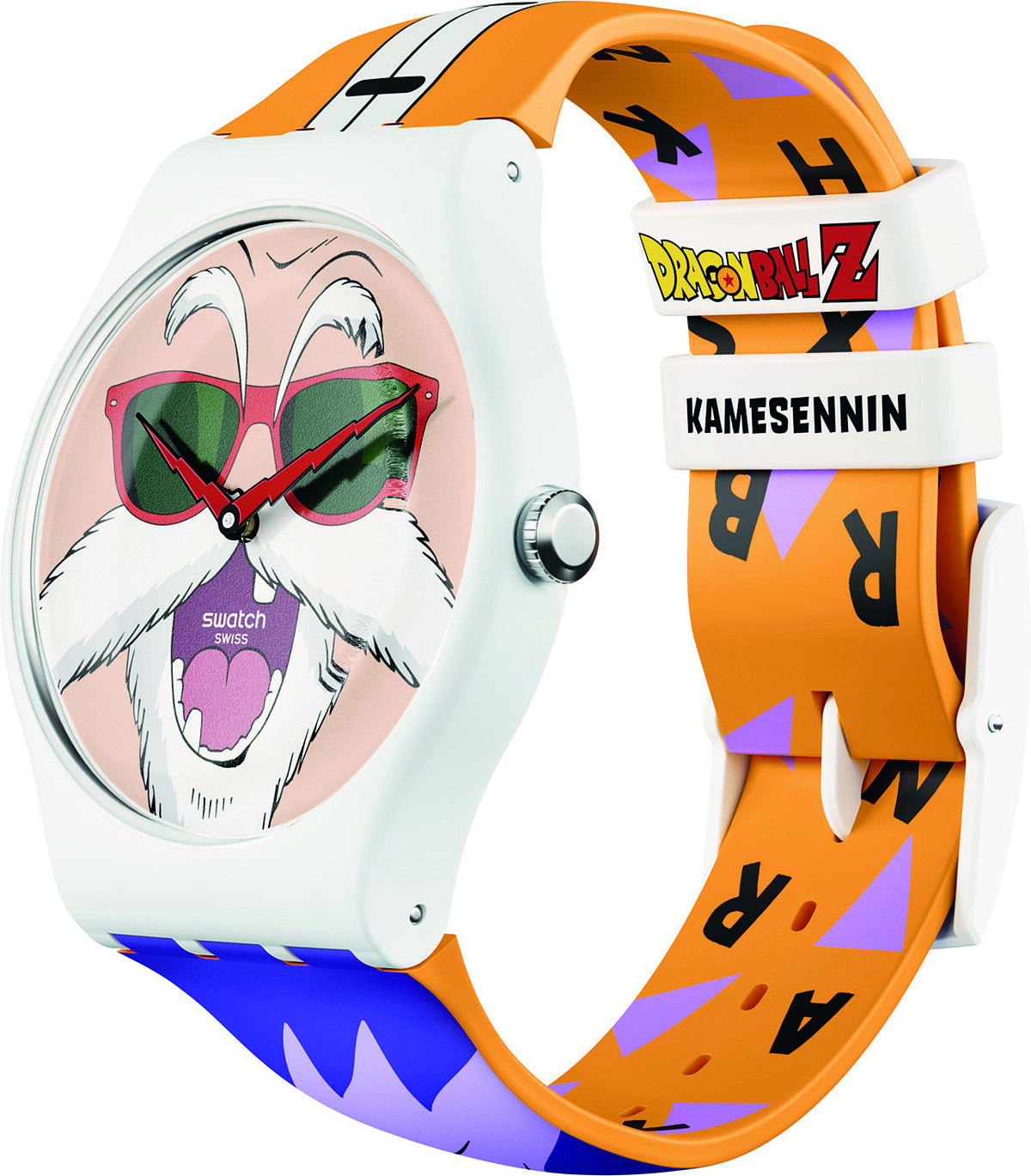 帶著墨鏡拄著拐杖的老爺爺,旁邊還跟著一隻大海龜,他就是悟空的師傅Kamesennin(龜仙人),你可以沒看過七龍珠,但你不能不知道龜派氣功,這個經典的招式貫穿了整部七龍珠,而作為創始人龜仙人的大臉直接被印在錶盤上了,背面則是他的夏威夷襯衫造型,紅色的指針據說在某一個角度的時候會變成爺爺的鼻血,表現出龜仙人好色的細節特徵。