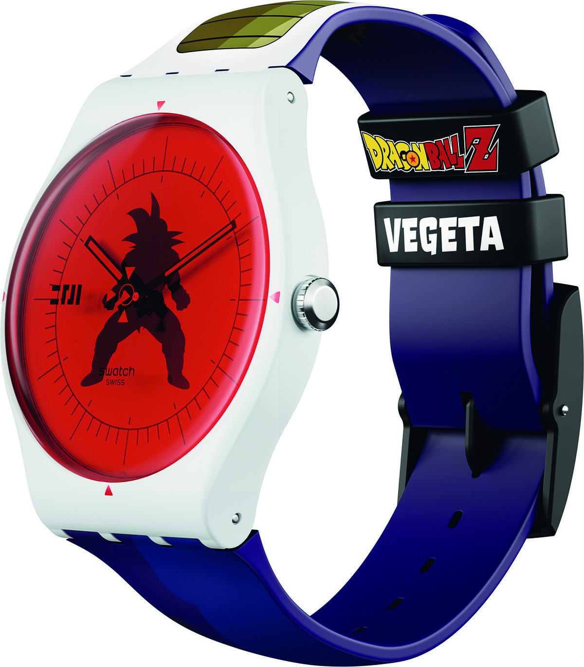 賽亞人墮落王子Vegeta(貝吉塔/達爾)初登場時是個侵略地球的反派角色,在被悟空打敗後留在地球修煉才變得善良成為保護地球的一份子,錶盤選擇重現了貝吉塔戰鬥力探測器的紅色鏡片,以超越悟空為目標因此錶盤中央還有悟空的剪影,錶帶的背面則是在漫畫及動畫中都從多次出現過的巨猿狀態的王子,是賽亞人中唯一變身成巨猿後還能保持理智戰鬥的人。