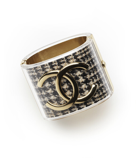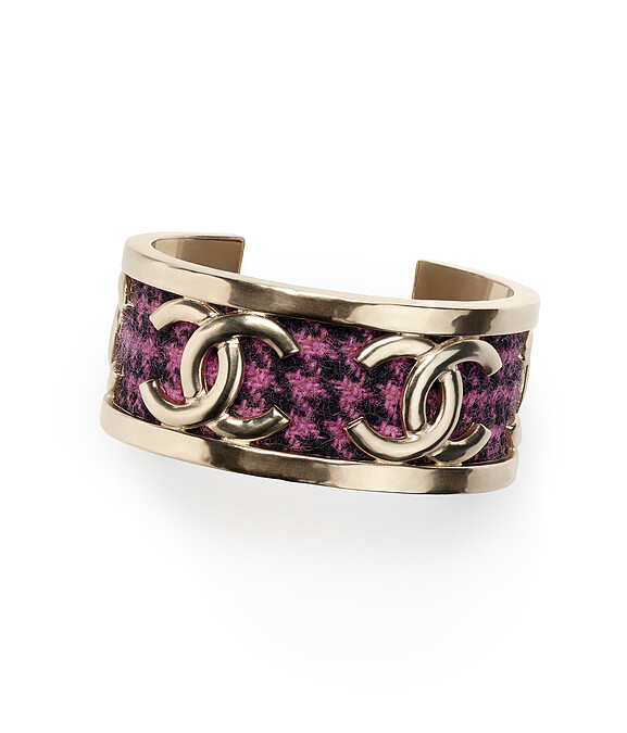 金屬斜紋軟呢雙C Logo寬版手環