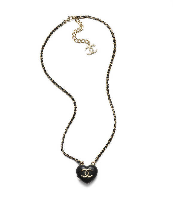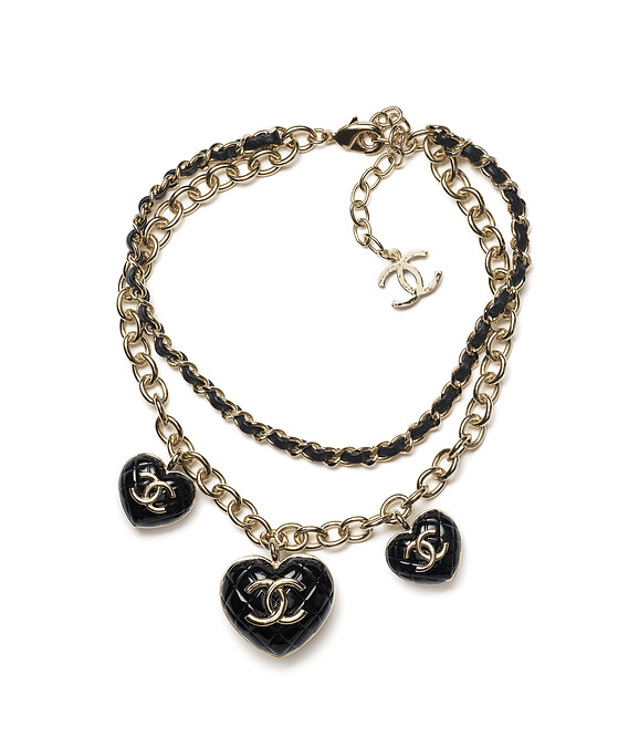 心型造型菱格紋雙C Logo皮穿鏈項鍊