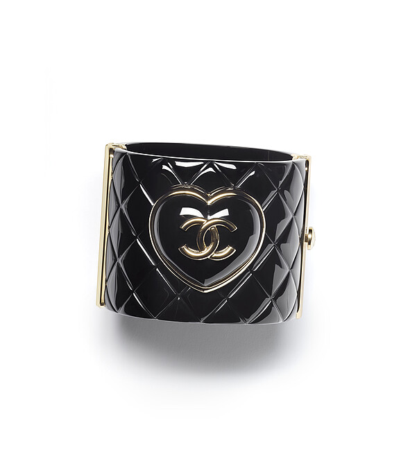 菱格紋心型造型雙C Logo寬板手環