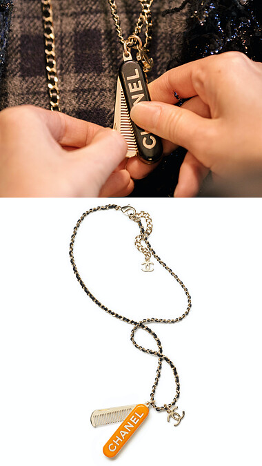 編輯的學生時期,每個女生的鉛筆盒裡一定都會有一把梳瀏海專用的扁梳,Chanel將扁梳製成精美的項鍊,折起來是掛飾、打開是梳子,搭配經典的皮穿鏈條,實用與造型亮點功能兼具。