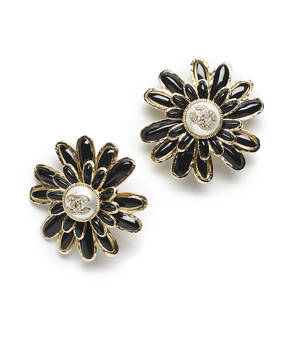 金屬水晶鑲飾雙C Logo花卉造型耳環