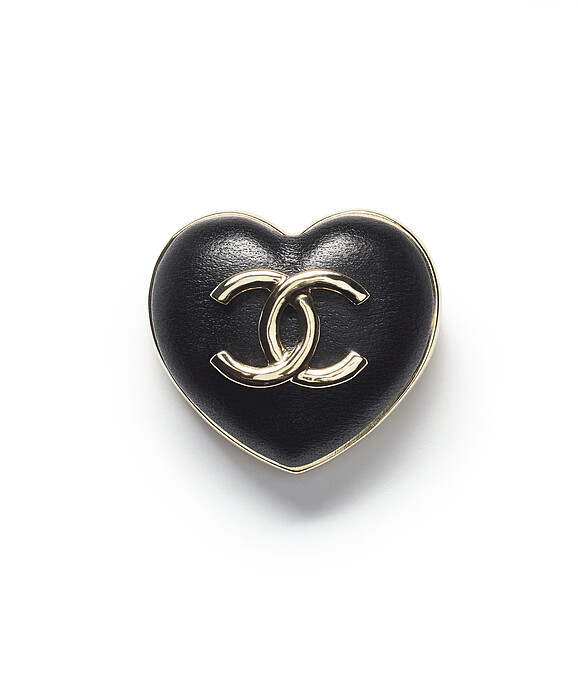 皮革金屬雙C Logo心型胸針