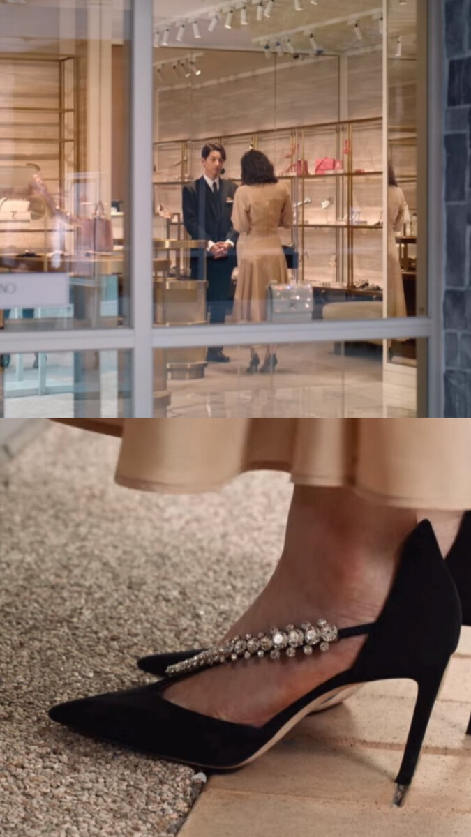 如果將Bruno Zumino打進Google搜尋引擎,所尋獲的結果為一名義大利的物理學家介紹,與高跟鞋完全扯不上關係。Bruno Zumino的真面目其實就是紅毯常客Jimmy Choo!金高銀腳上所穿的高跟鞋的型號為Bee,氣質的尖頭設計,水晶鏈帶像是手環一般、以不對稱的放射線狀點綴於左右兩腳。