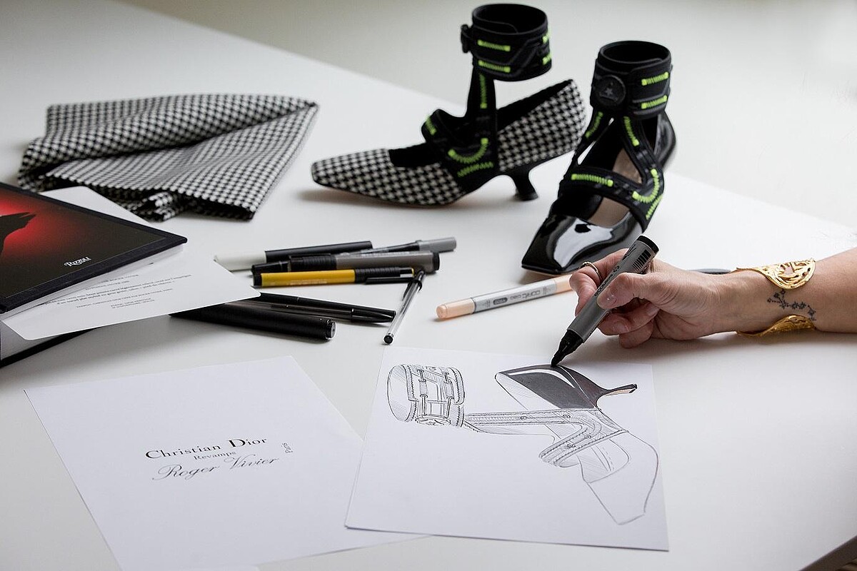 自1953年起,迪奧先生與 Roger Vivier 即建立起難得可貴的合作關係。歷久彌堅的友誼、自由奔放的創意、力臻完美的精神,這些特質讓兩人有著絕佳默契。兩人對鞋履的共同觀點-希望作品具有立體建築感,讓迪奧鞋履躋身高級訂製傑作之列。他們的設計理念促使刺繡工藝師、織布工藝師、羽飾工藝師、皮革工藝師等優秀夥伴發揮創作天賦與傑出技藝,賦予這些作品生命。
