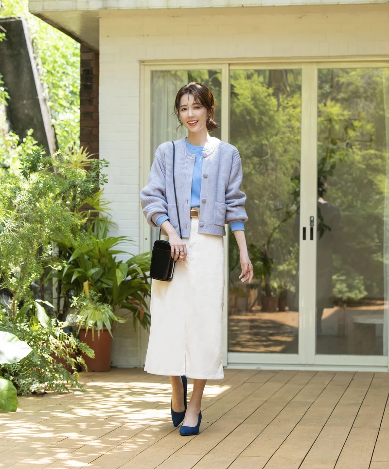 好穿又好搭配的GU雙口袋短版開襟外套深受邵雨薇喜愛,她建議女生們內裡除了搭配襯衫之外,連輕薄的針織衫都可以搭,即使是正式進入涼爽的秋天也能輕鬆搞定溫差穿搭,而且外套貼心地考量到女生身型,特別以時髦的短版呈現,恰到好處地可以遮住腰線,邵雨薇以清爽溫柔的藍色x白色展現知性風格,開襟外套配上窄裙,舉手投足充滿著優雅女人味!