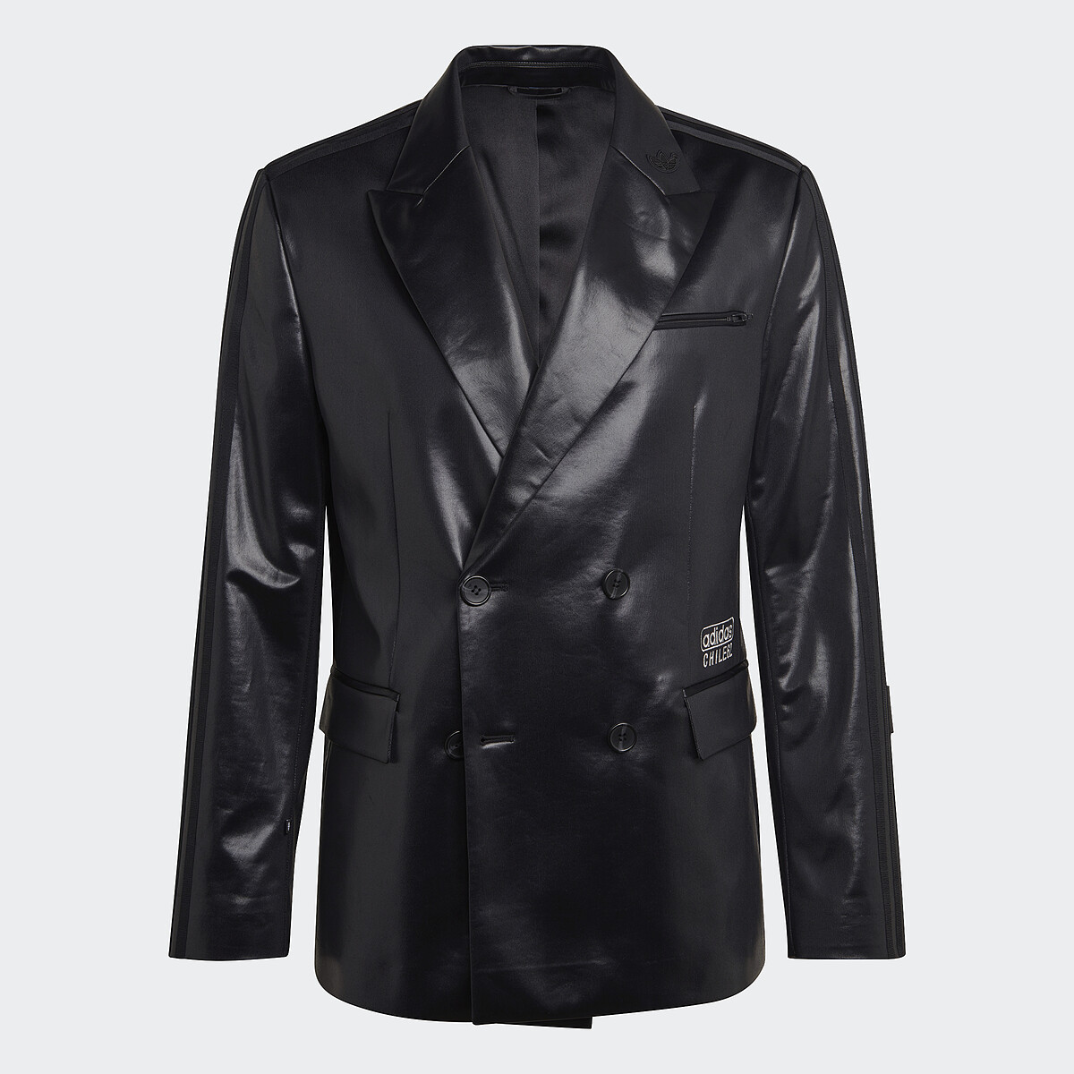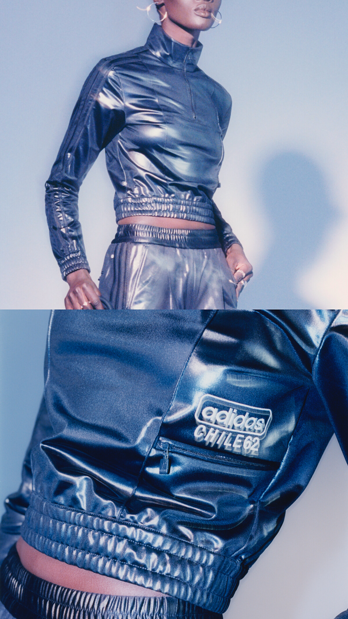 同樣以Chile 62材質製成,愛迪達另設計出秋冬不可或缺的西裝外套,配上類皮革的光澤,冬日最時髦非它莫屬!下身不論是搭配喇叭褲、西裝褲皆適宜。