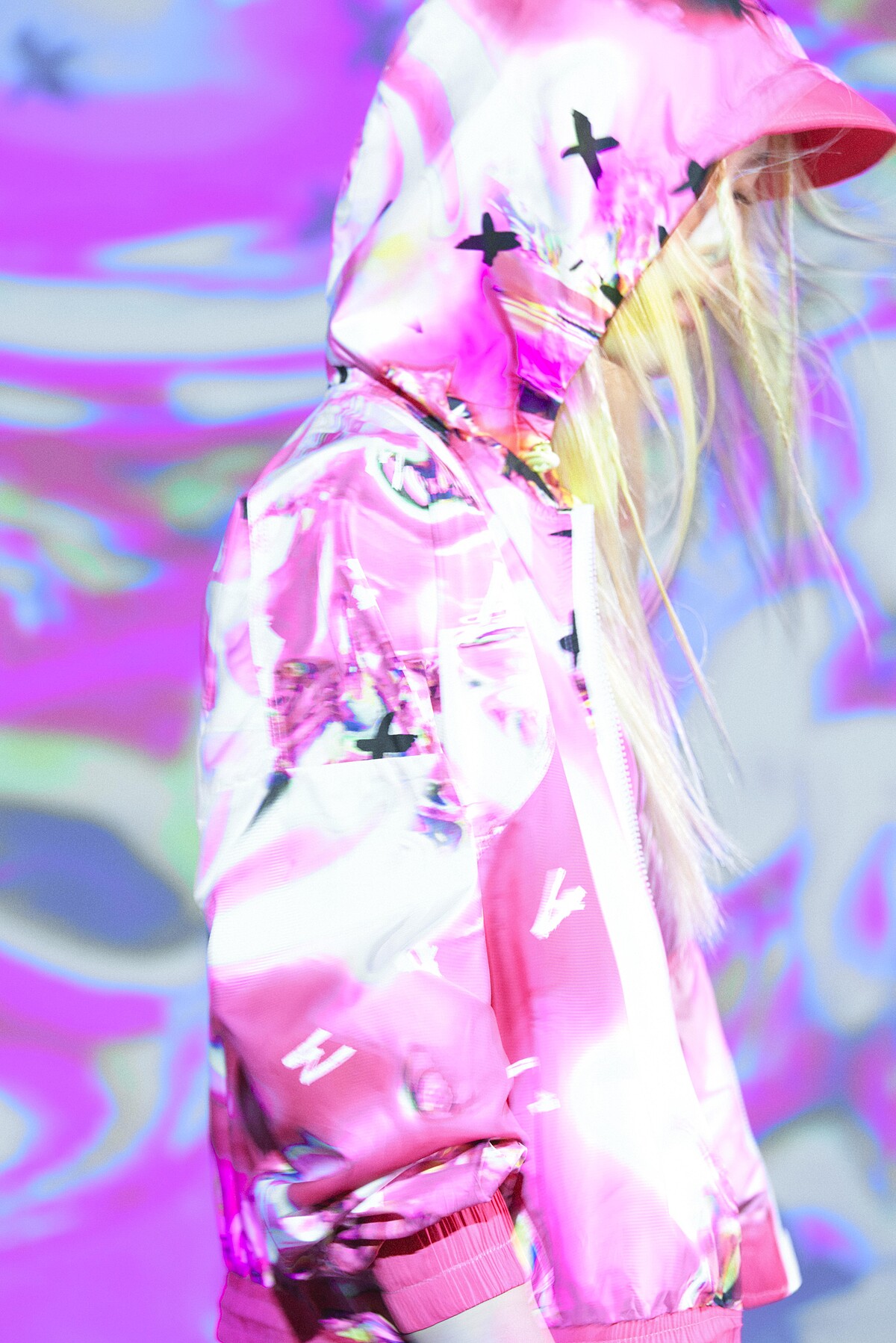 此次的聯名合作也有意想不到的挑戰,Claudia Wang王子欣表示在確保印花圖案會落在完美修飾身型的位置,但此次的高彈性布料會有位置變化的問題,若按照傳統作法則有可能造成布料浪費。所以製作上以本身擅長的數位印花製作,大幅減少資源與原物料的浪費,此舉正呼應的MOMA持續關注的永續時尚