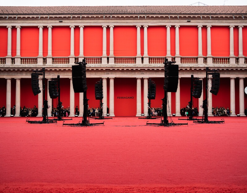 本次的大秀場地選在米蘭前大主教神學院的宮殿所舉行,該學院由文藝復興時期歐洲神學家及羅馬天主教會樞機—聖嘉祿·鮑榮茂在十七世紀委託建造,至今仍被認為是巴洛克與新古典主義建築的經典歷史模範。現在作為古蹟保存及建築修復的全新項目,這座古老的神學院將化身成為Portrait Milan 飯店,其中包含精品商店、高級餐廳與花園空間,期待成為位於米蘭市中心的全新景點。