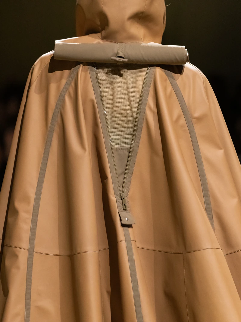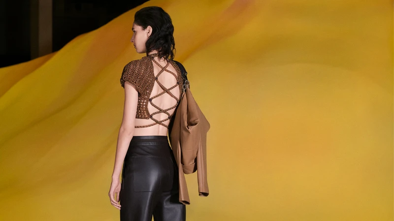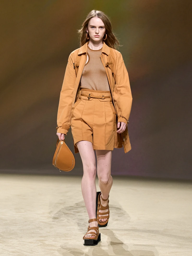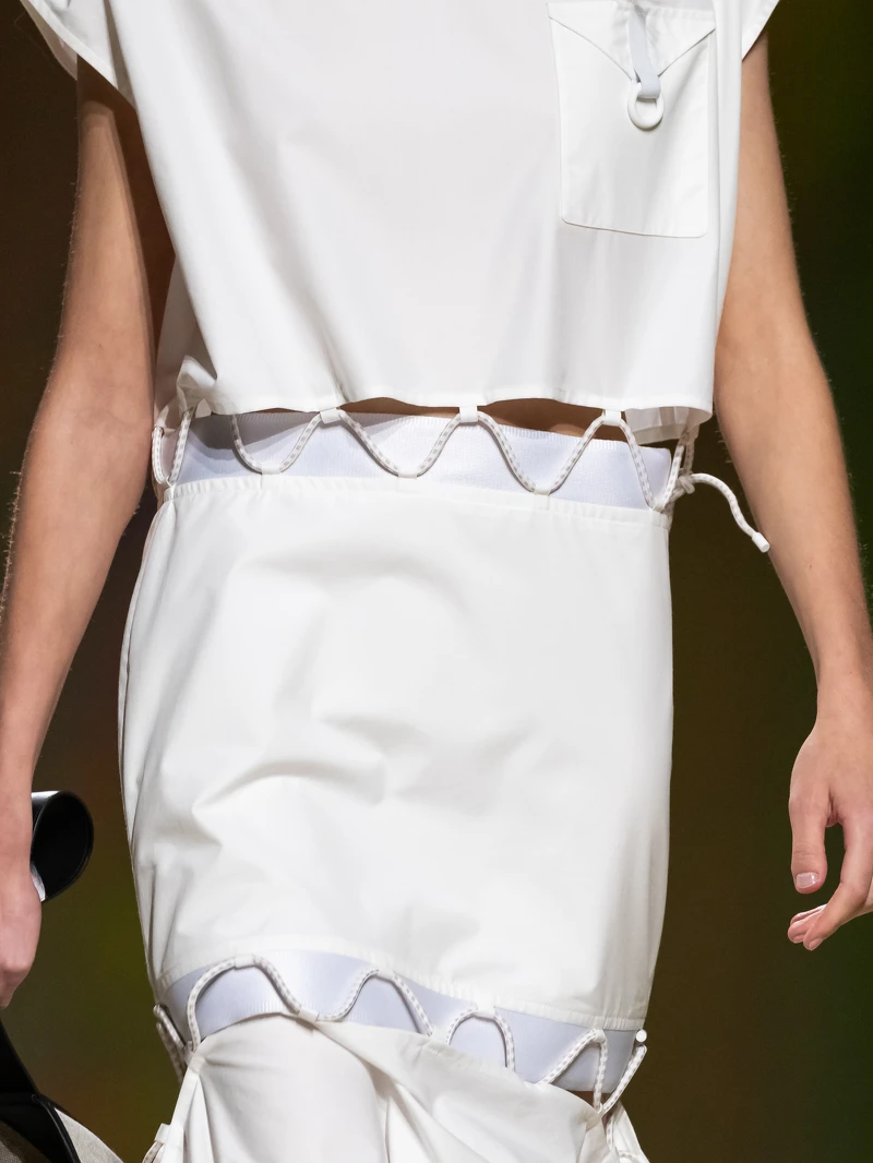 在2023春夏系列裡,創意總監Nadège Vanhee-Cybulski將場景設想為:一名女子,背著一些露營道具來到沙漠展開一場探索之旅。因此,此際秀上出現了許多機能性質的元素,其中最明顯的就是繩索的運用,化作腰間的性感纏繞、領口與面料的趣味點綴與串連,為精品時裝注入工裝氣息。