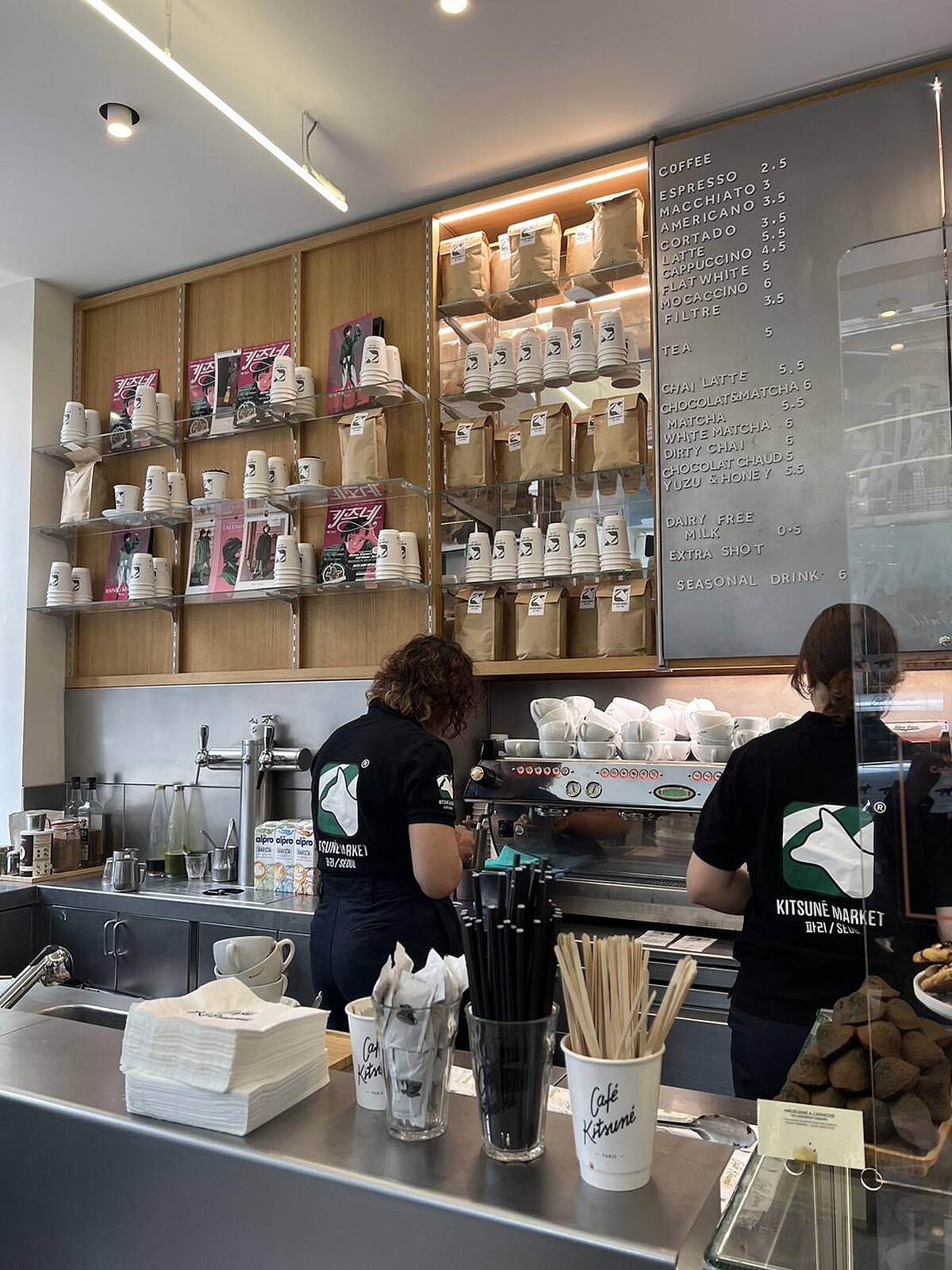 Café Kitsuné包括美式咖啡、濃縮咖啡、拿鐵、香料奶茶、抹茶…等選擇,還有各式各樣的點心、鹹食,還有小狐狸造型的軟糖。
