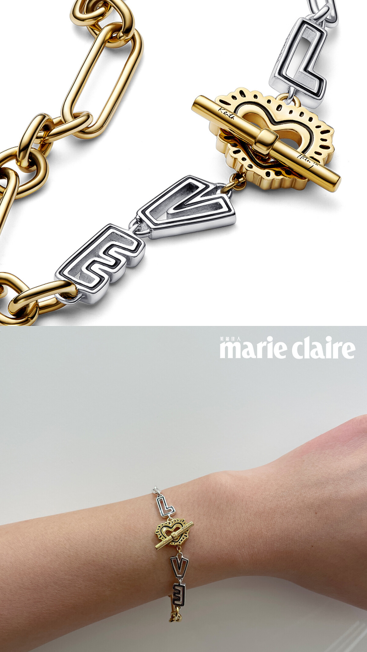 把O換成Keith Haring塗鴉愛心的形狀,金銀撞色的鏈條相接在一起更顯個性。