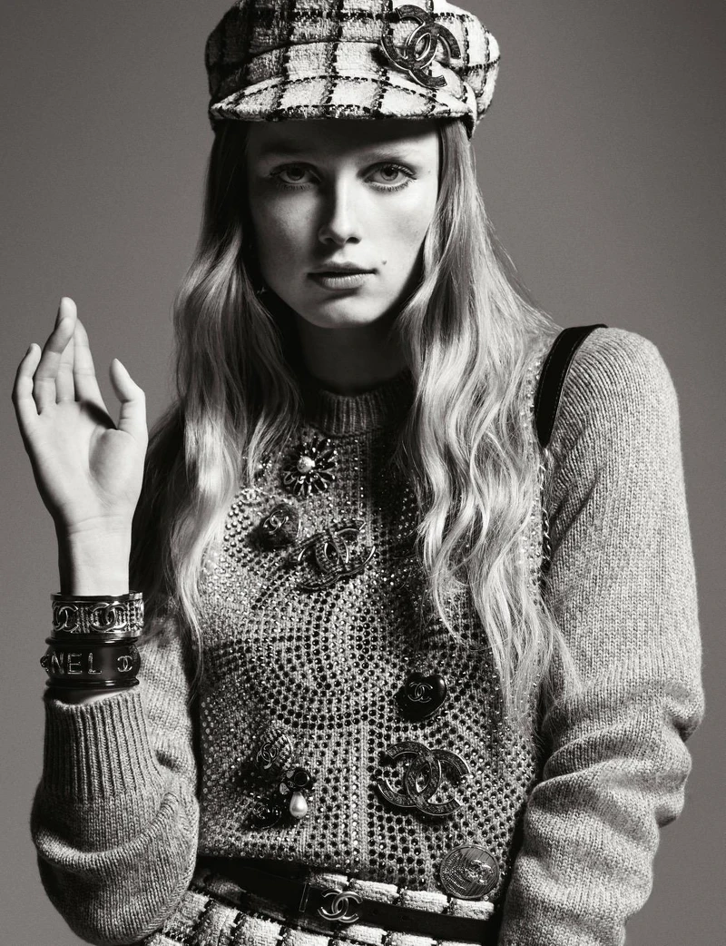 本次拍攝,編輯以「With Tweed」為題,連繫當年香奈兒女士遊歷 River Tweed 河畔,從自然景致尋找關於「斜紋軟呢」的創作靈感,更將這些大自然所賦予的恩惠帶回巴黎,給予世界上所有女人在衣著上的絕對自由與自信。