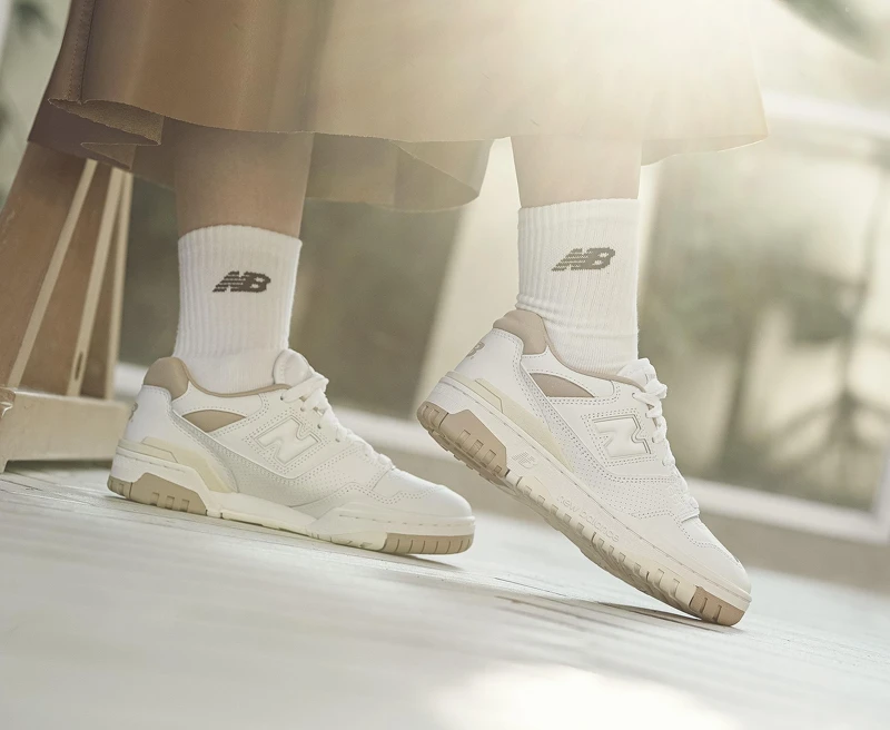 立體N字LOGO、透氣網眼設計與鞋面550字樣的設計細節,搭配上存在感十足的鞋型線條,不僅是NB 550的設計特點,更是能讓女性顯得雙腿線條纖細的絕讚設計,以原有基礎發展設計,進而滿足現代女生在混搭、修飾、時髦面向上…等多種需求。