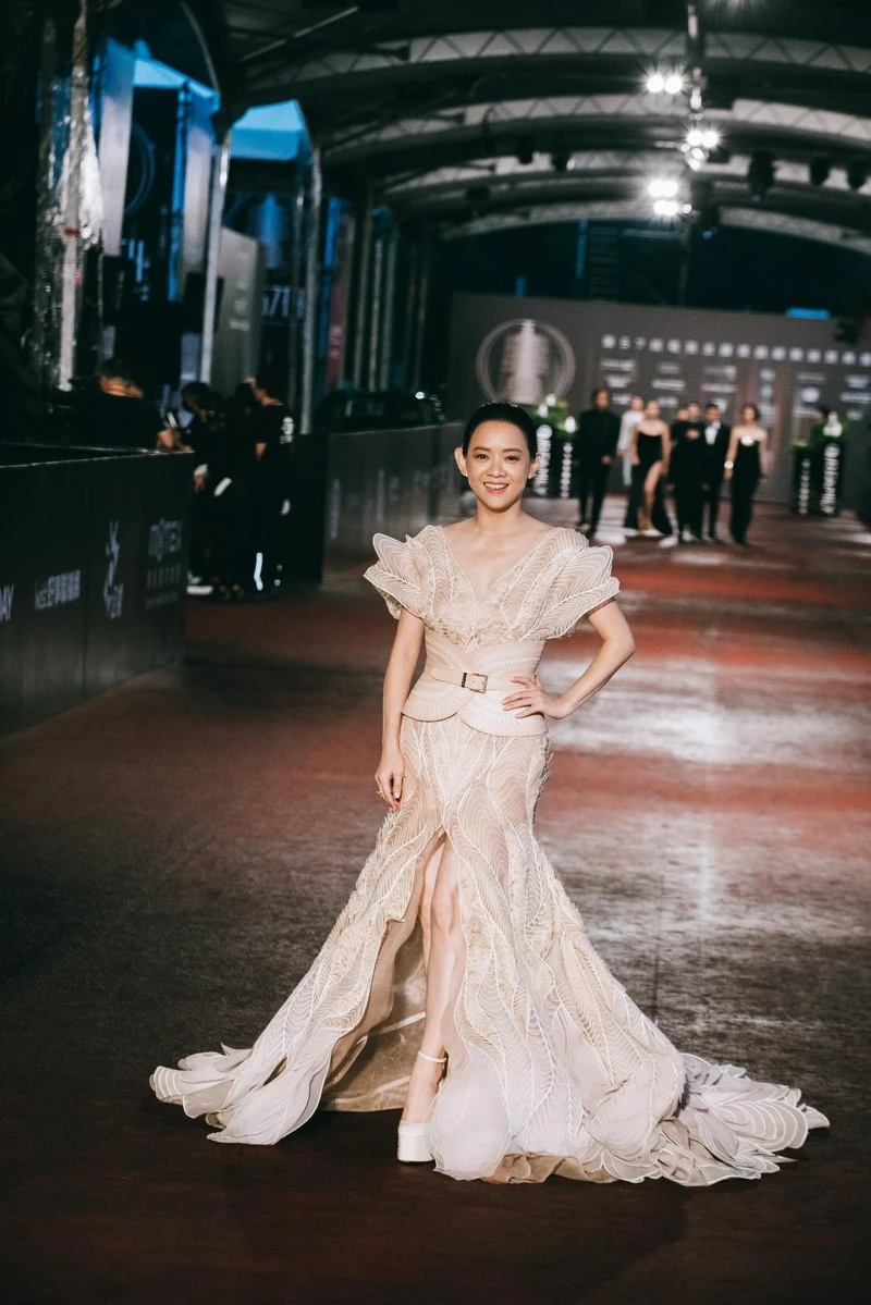 昨晚是入圍者,今晚是典禮主持人,曾寶儀風格大轉變,仙氣的裸色雪紡禮服,襯出她白皙的肌膚,優雅又浪漫。