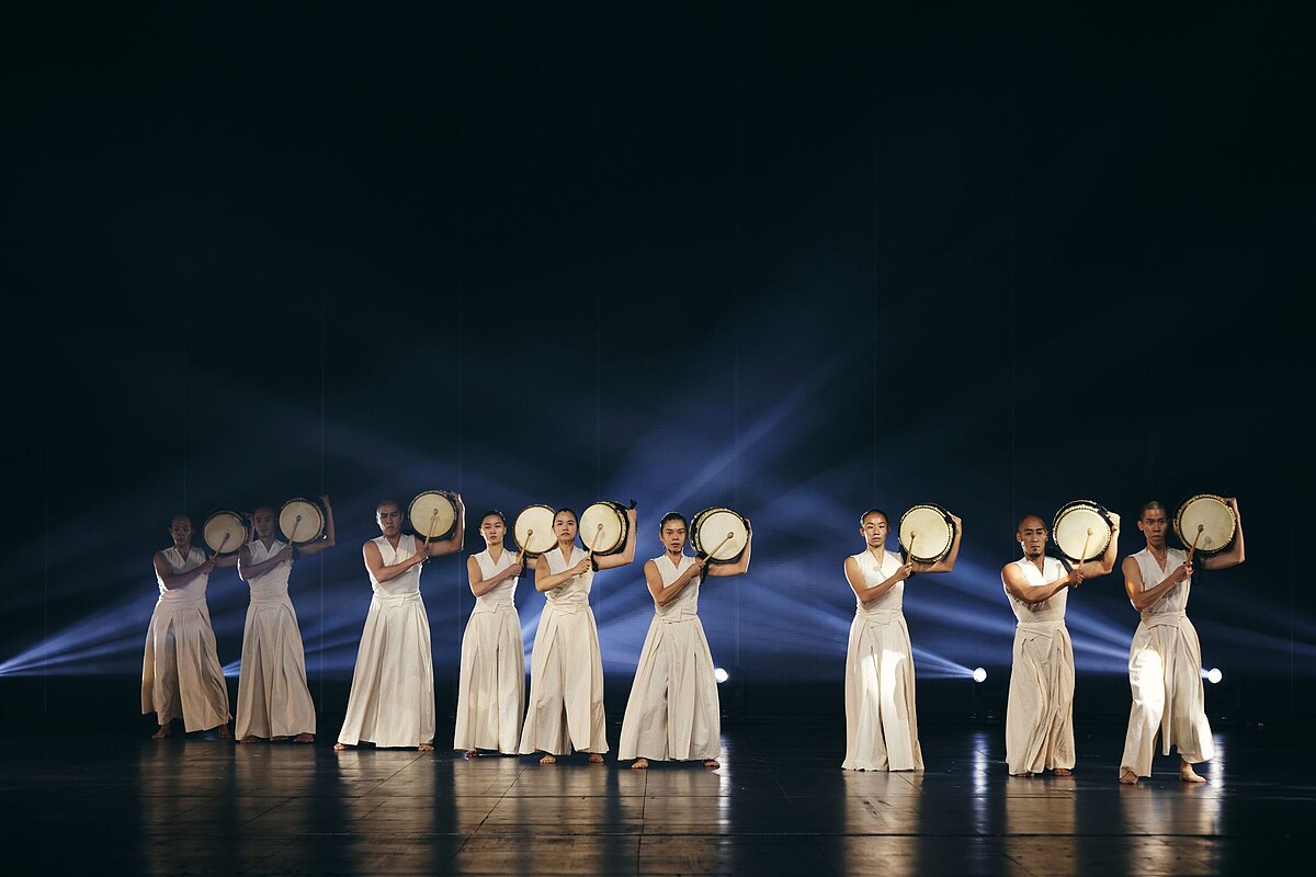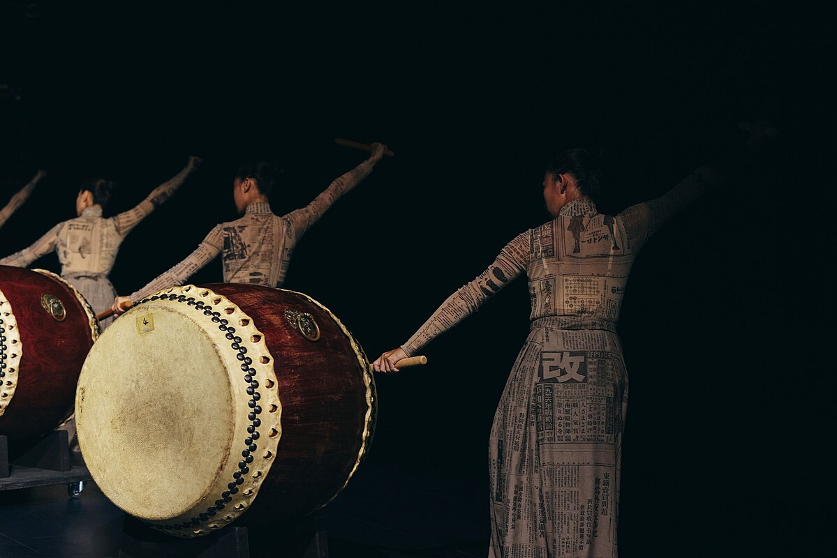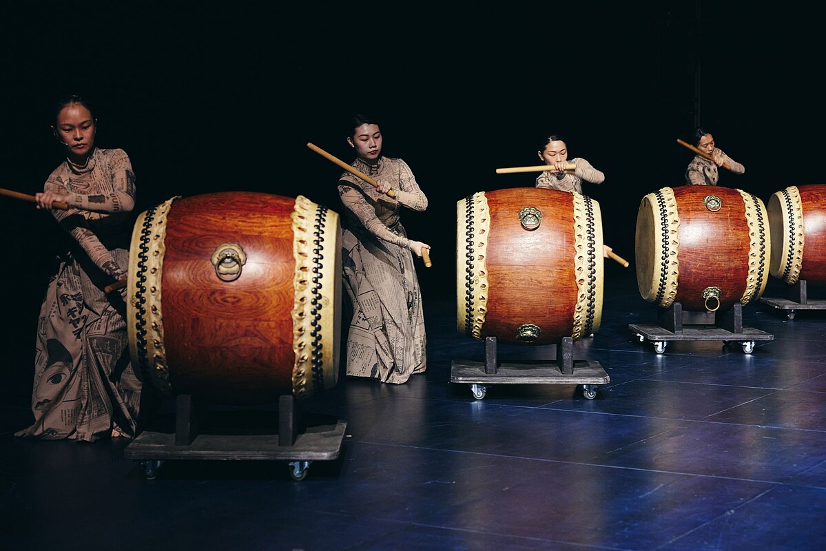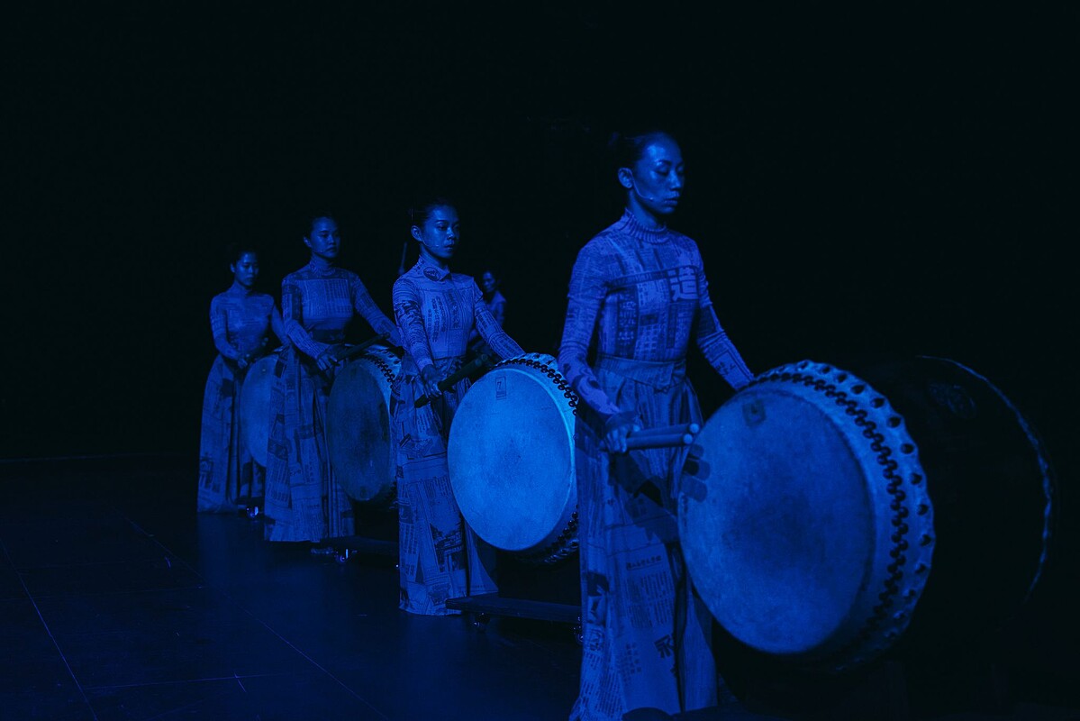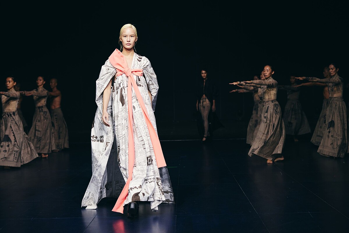 秀上一大亮點,當然就是本次品牌享譽國際的「優人神鼓」攜手合作,當代創作者跨領域的交流,優人們身著「報紙印花服裝」彷彿將知識穿上身,將屬於台灣的文化結合碰撞出令人耳目一新的氣勢磅礡。