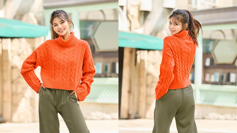 甜酷女孩的王道搭配,柔軟短版高領針織衫x運動風褲裝穿出輕歐美風