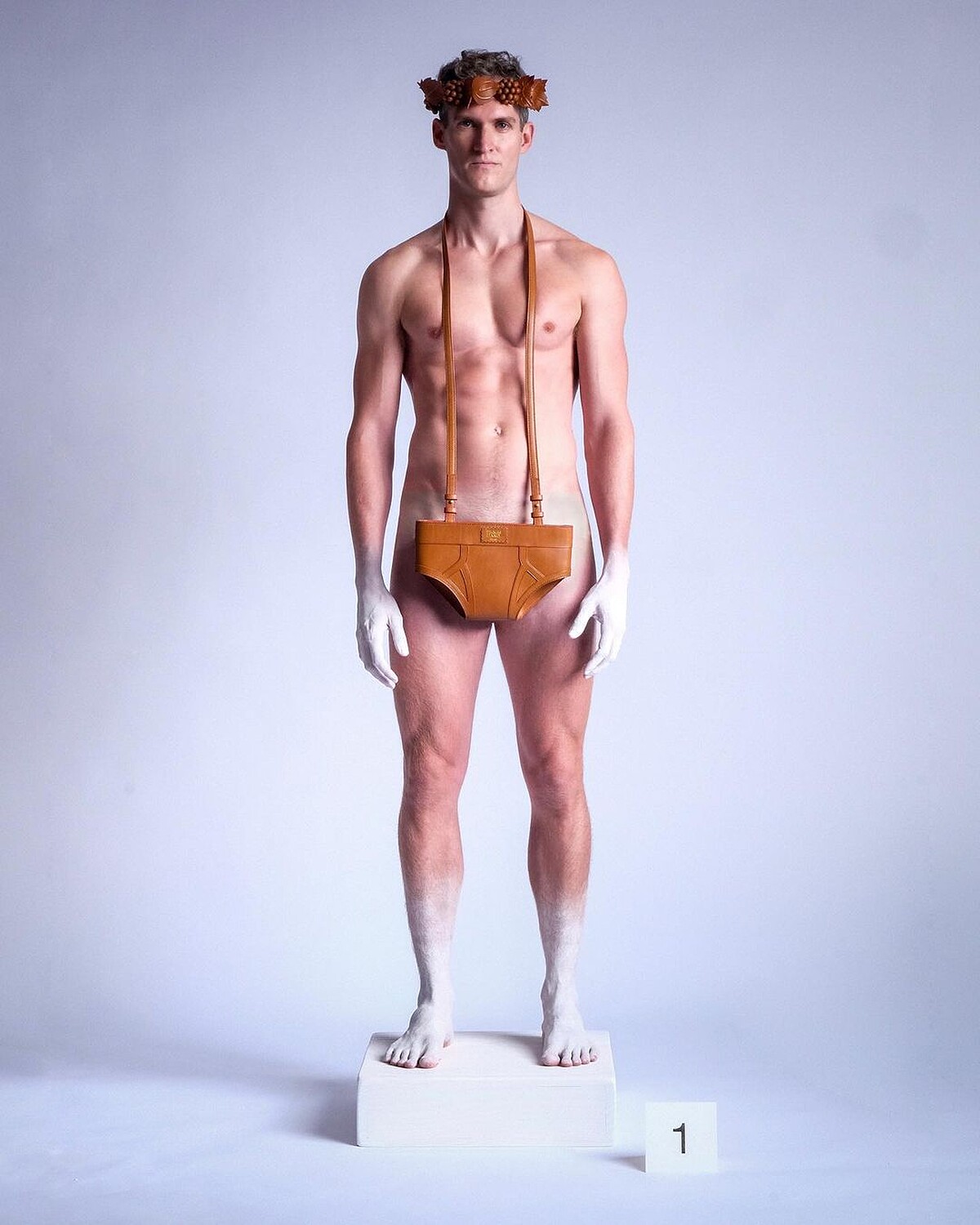 每年總有時尚品牌會推出讓你意想不到的驚喜之作,最近一款底褲包包席捲各大社群平台,原因是背著包包的男模特兒全裸,而包款的位子恰巧擋住男生的重要部位,因此,引發大家強烈的好奇心,到底這個包包是什麼來頭?