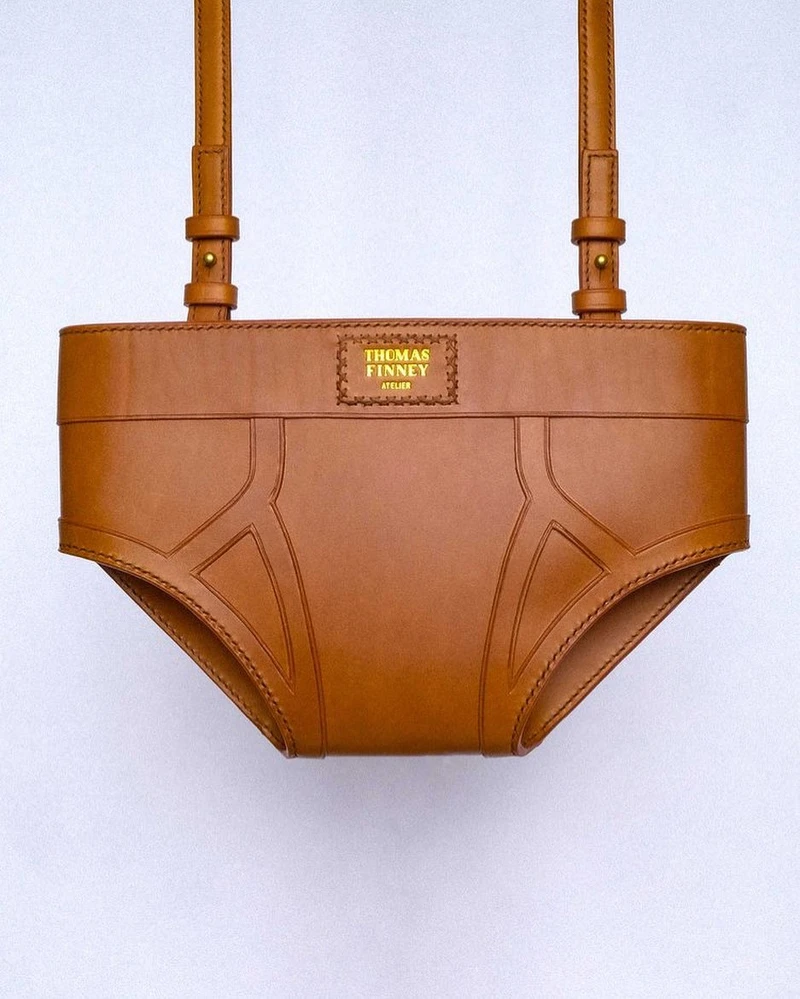 人氣爆增的底褲包,其實是來自美國的設計師品牌Thomas Finney,他曾經在Thom Browne底下工作,後來創立了個人同名品牌,堅持選用義大利頂級的皮革原料,並以細緻的手工製作聞名,更與Club Monaco有過合作。
