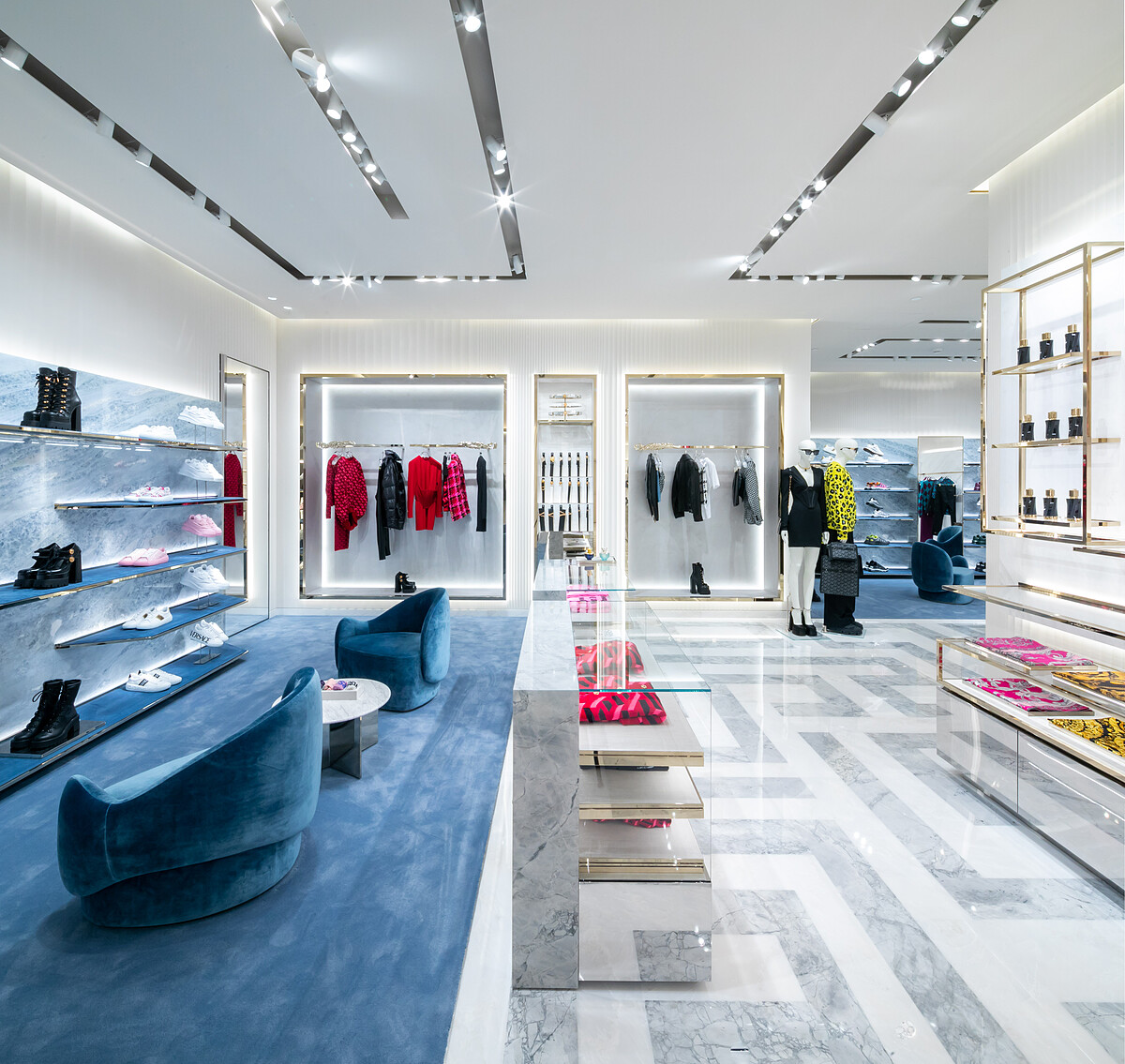 而最標誌性的梅杜莎,除了在門口,店內的天花板還有更大一尊嵌入其中,將Versace的浮華精神發揮地淋漓盡致。