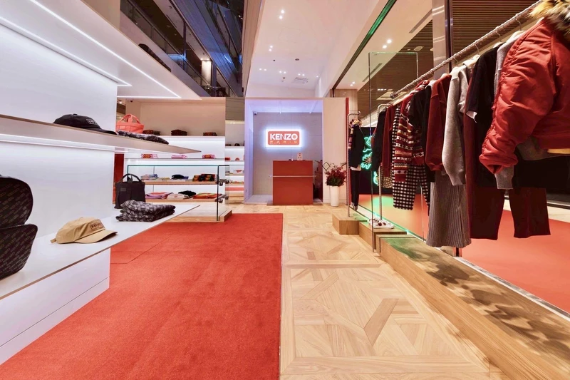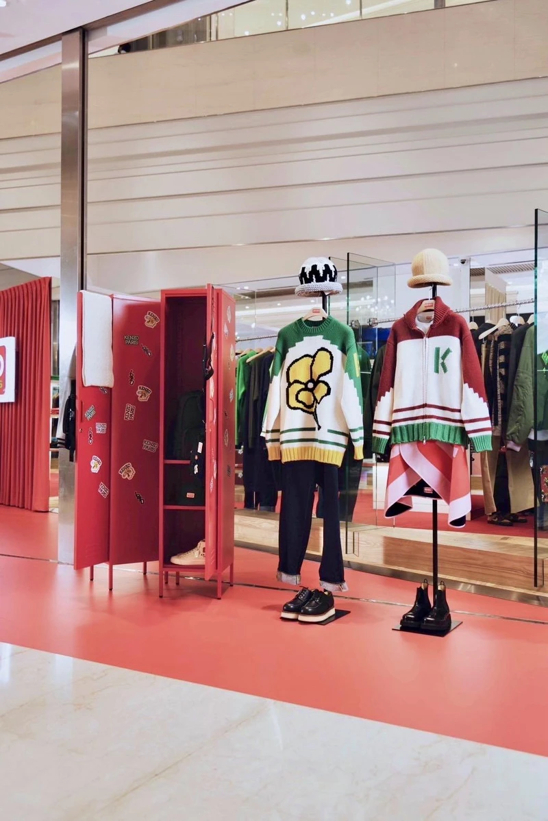 Kenzo最近進駐到微風南山百貨,以大量的紅白配色來致敬品牌的日本基因,把海棠花化身為衣桿上的小亮點,是一個令人會心一笑可愛驚喜。