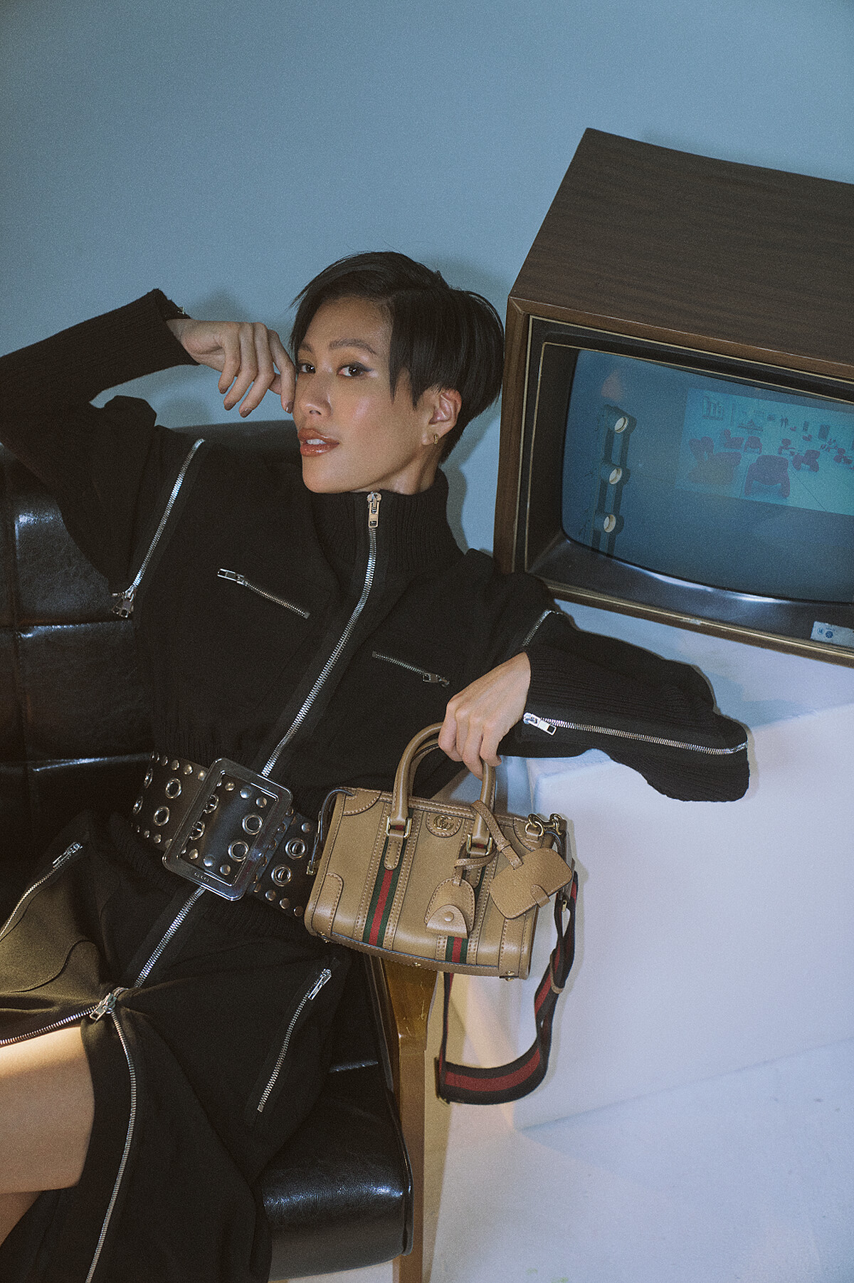 從綜藝節目的固定成員,到現在國際知名的時尚名人,在許多人看不到的那些日與夜時分,都有著她一路堅持心中追求目標的努力痕跡,進而主導書寫出屬於自己的人生劇本,並交出精彩的成果。莫莉以她獨有的精神態度,一一撕掉那些貼在身上的標籤,拒絕被固定的框架限制,成為大家眼前充滿風格態度的知名時尚名人,透過這次以Gucci「Exquisite Gucci」系列的演繹,完美呈現出莫莉的獨特性。