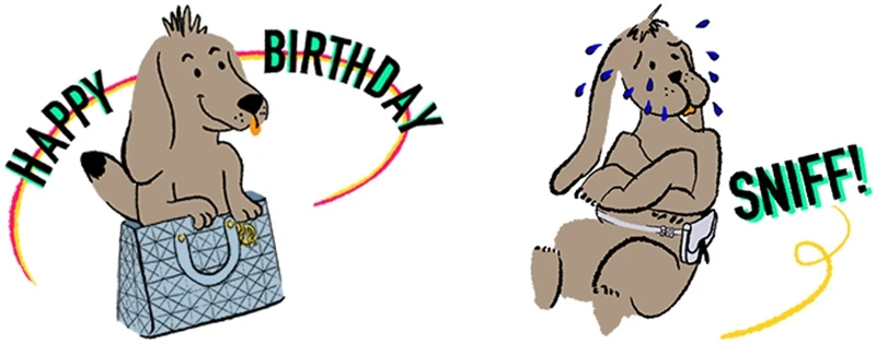 時尚圈都知道迪奧先生是知名的愛狗人士,「Bobby」不僅是Dior世家的忠犬,更是品牌取之不竭的靈感泉源,從香水瓶、公仔到手袋,都有牠留下的足跡。貼圖在充滿創意巧思的插畫風格下,靈動描繪迪奧先生的愛犬與忠實夥伴Bobby,加入品牌經典設計元素,如Dior Essential 提包、Saddle馬鞍包與Mitzah絲巾等,打造充滿俏皮趣味與活潑靈動的創意風格。