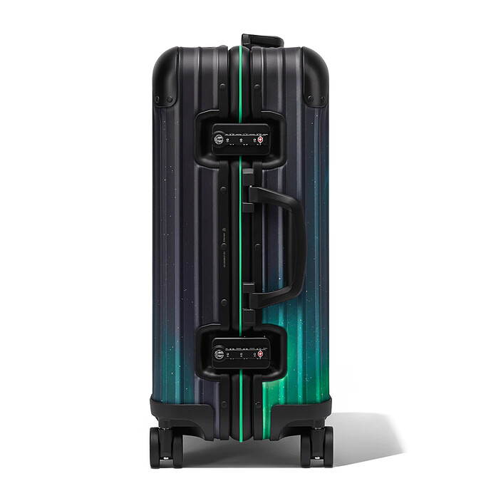 精品之所以讓人著迷,就是在你沒想到的地方添上迷人細節!RIMOWA特別以極光綠來呈現此款行李箱封邊條,不失為一大亮點。值得一提的是,此次限量的數字也有其背後小故事:極光的生成,是因為帶電的太陽粒子以1,000km/s的速度穿越地球磁場,品牌遂把Aurora Borealis限定系列生產數量訂為1,000個。