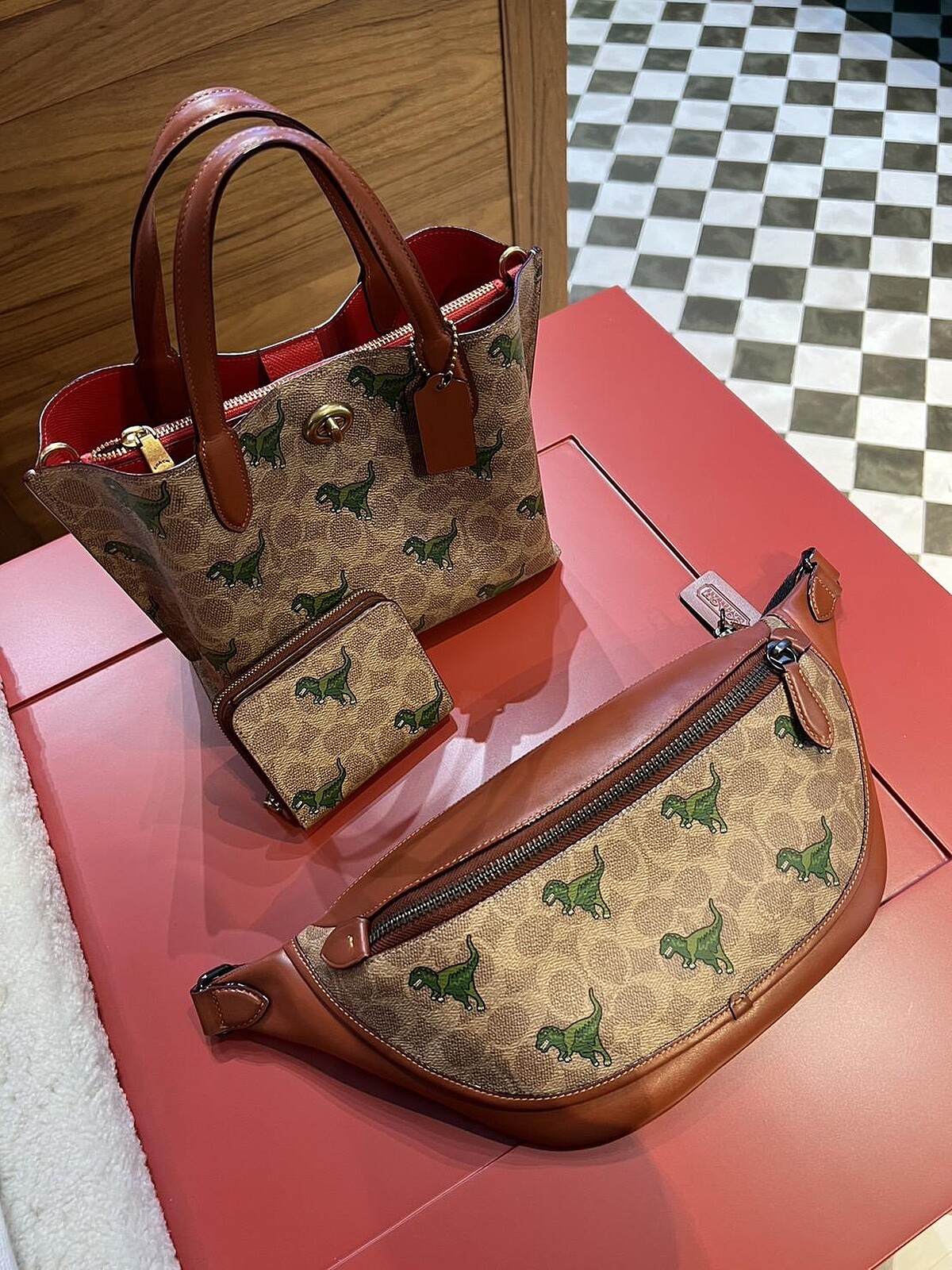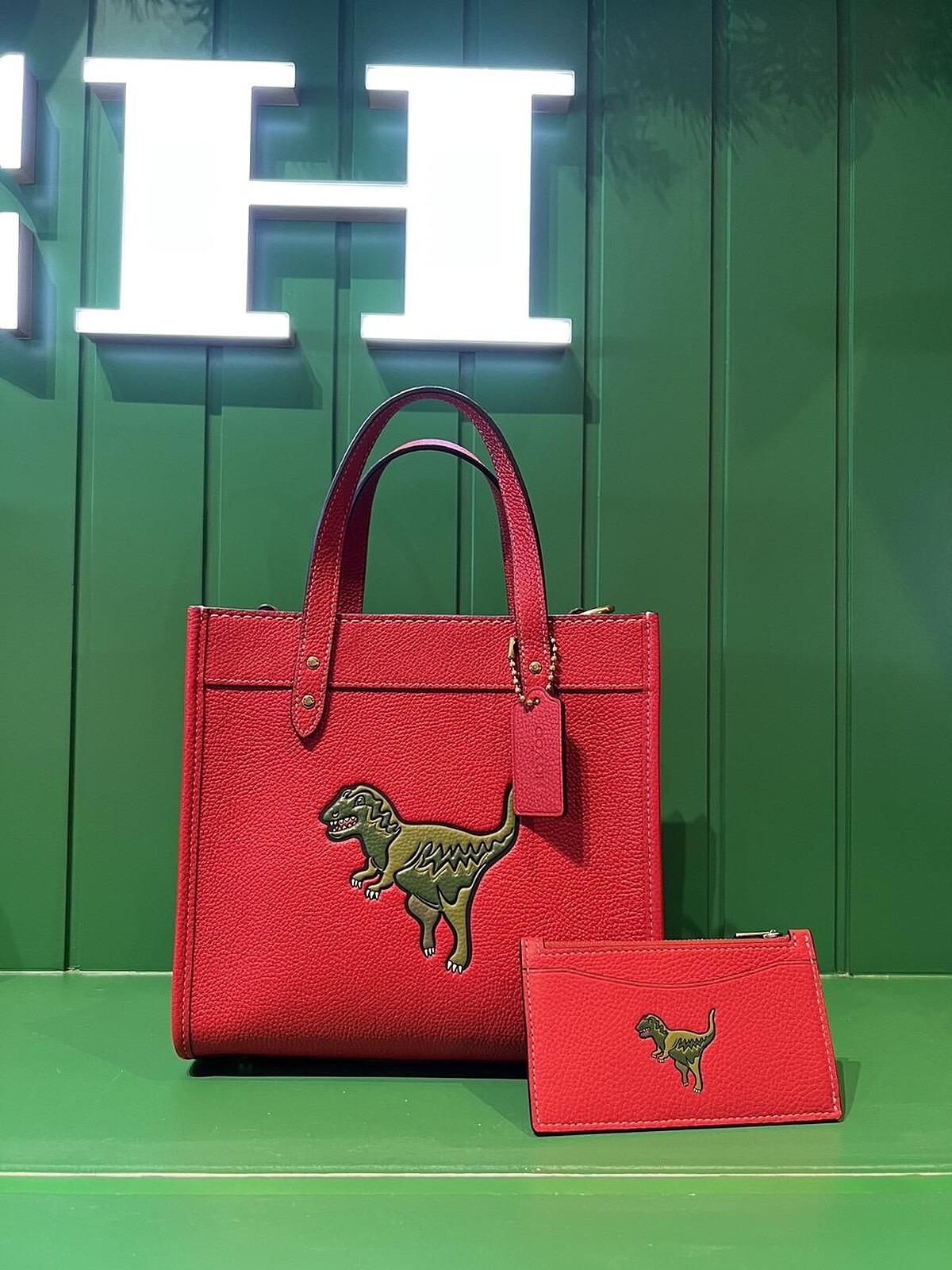 除了經典Signature C印花帆布款外,Coach搭配佳節氣氛,將Rexy恐龍刺繡推出喜氣感十足的紅色托特袋。
