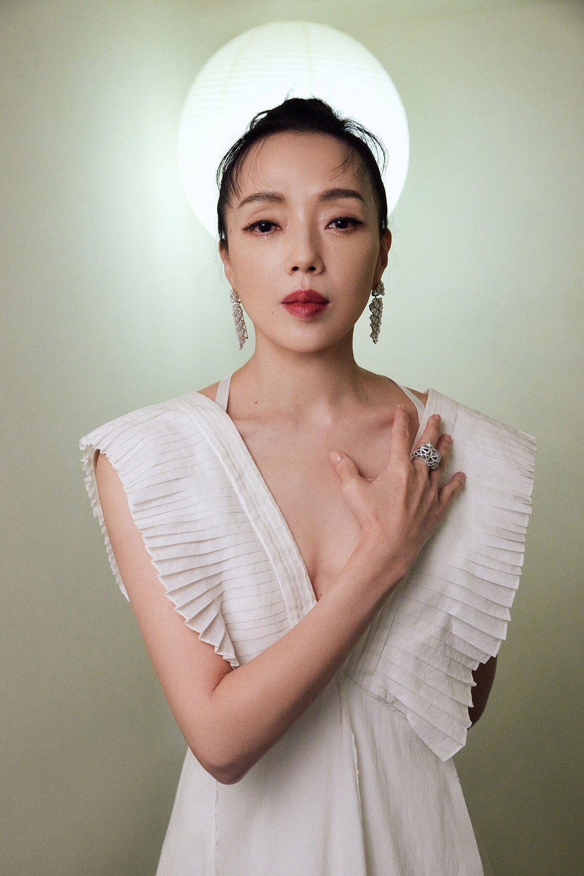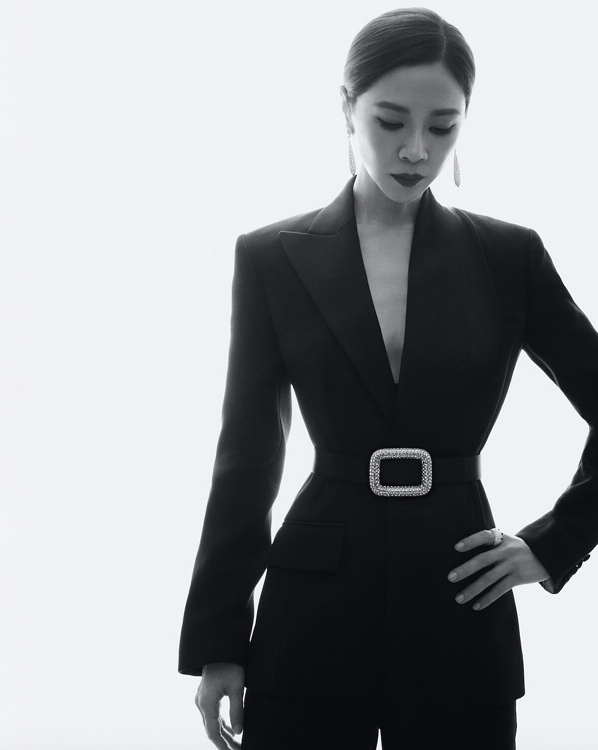 本屆擔任評審的桂綸鎂以一襲Chanel褲裝搭配鑽石珠寶,包括流蘇造型耳環與戒指,胸針則是妝點在開衿腰際處,別出心裁!