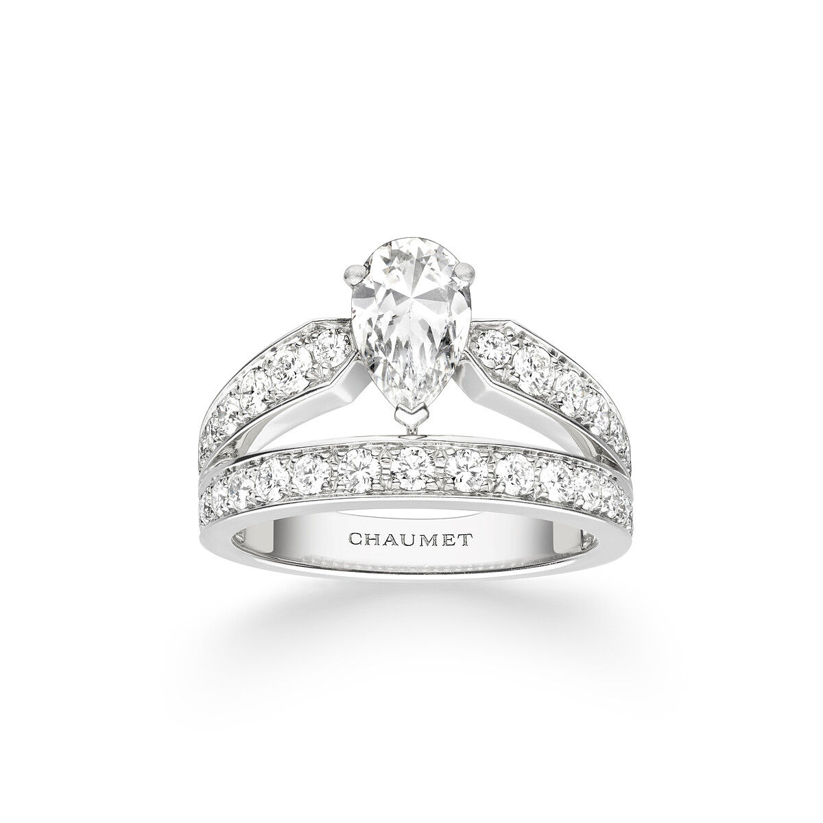 鑲嵌一顆 1 克拉以上的梨形鑽石與明亮式切割鑽石。建議售價 NT$1,297,000