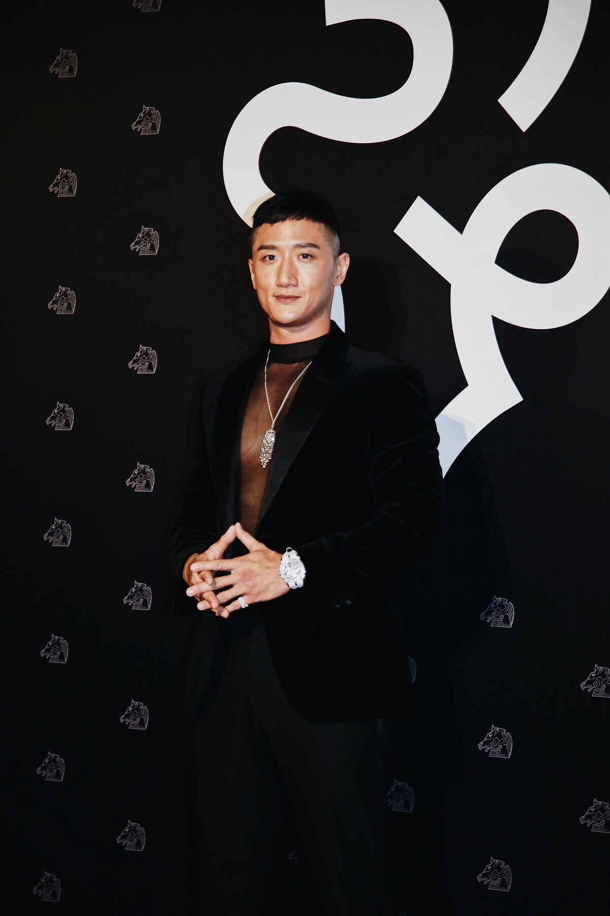 陳昊森用低調的豹紋印花搶盡攝影師目光,面料上的金色細節像是油畫一筆一筆劃上,低調奢華就是如此。