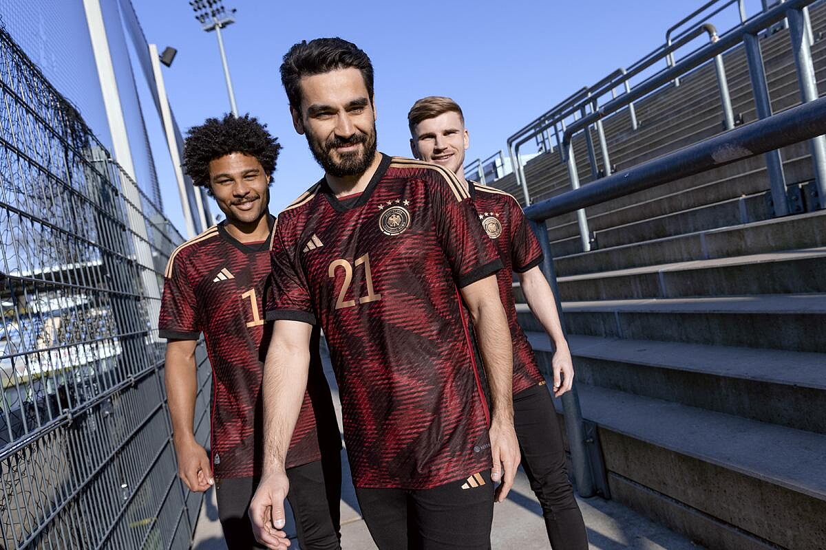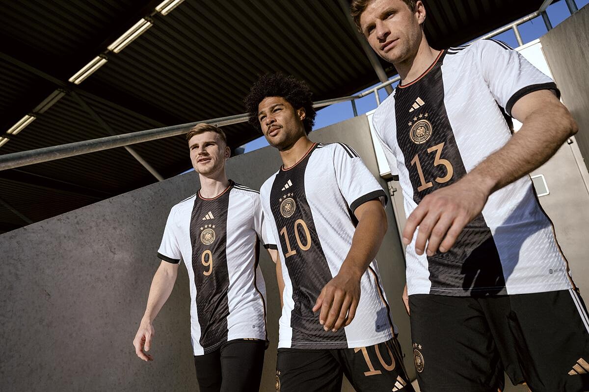 實力不容小覷的德國隊,就連球員的顏值也是焦點,此次2022世足賽上,德國為突顯優雅氣息,採用黑白相間的配色作為主場球衣,其靈感是來自1908年德國隊首件球衣。客場球衣德國隊以前衛的黑紅配,展現出活力四射的團隊精神。